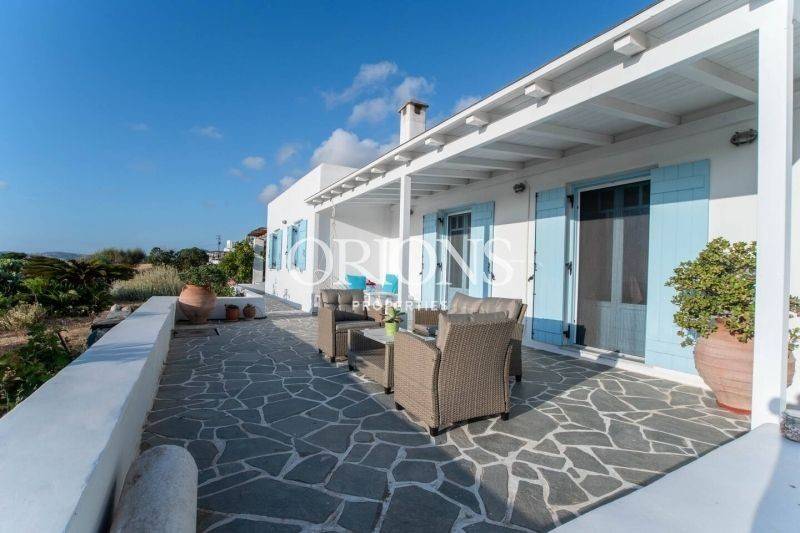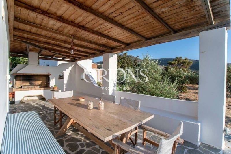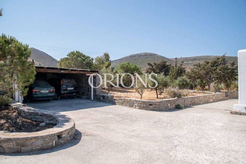 Το σπίτι βρίσκεται λίγο πιο πάνω από την Παροικιά, στην ύπαιθρο, σε ήσυχη θέση με προσανατολισμό προς το ηλιοβασίλεμα και αίσθηση ιδιωτικότητας. Το ακίνητο εκτείνεται σε οικόπεδο 4.003 τ.μ. και αποτελείται από κύρια κατοικία 126 τ.μ. και ξεχωριστό στούντιο 27 τ.μ., προσφέροντας ευελιξία για φιλοξενία, οικογένεια ή ανεξάρτητη χρήση.