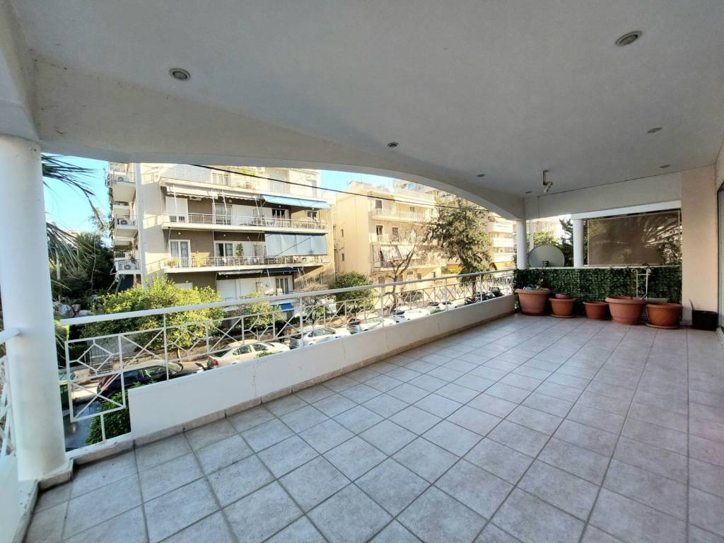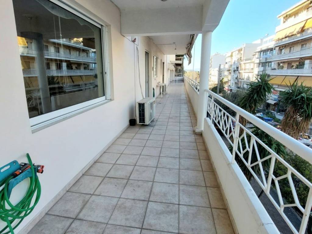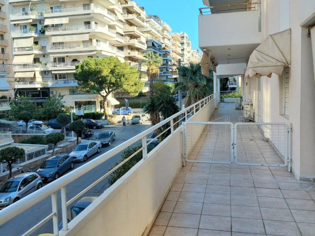 Το διαμέρισμα βρίσκεται σε εξαιρετική τοποθεσία, στο εμπορικό κέντρο του Παλαιού Φαλήρου. Είναι ευρύχωρο και φωτεινό, με μεγάλο σαλόνι 30 τ.μ. και σπάνιο μπαλκόνι και βεράντα συνολικής επιφάνειας 100 τ.μ. Όλα τα δωμάτια διαθέτουν κλιματισμό. Στο ισόγειο του κτιρίου υπάρχουν δύο τράπεζες. Απέχει μόλις 50 μέτρα από τη θάλασσα, σε ήσυχο περιβάλλον παρά την κεντρική του θέση. Περιλαμβάνει υπόγειο χώρο στάθμευσης. Η στάση του τραμ και η στάση λεωφορείου βρίσκονται σε απόσταση 100 μέτρων, ενώ το Πάρκο Φλοίσβου απέχει 200 μέτρα. Η καθημερινή ζωή και οι μετακινήσεις είναι ιδιαίτερα άνετες.