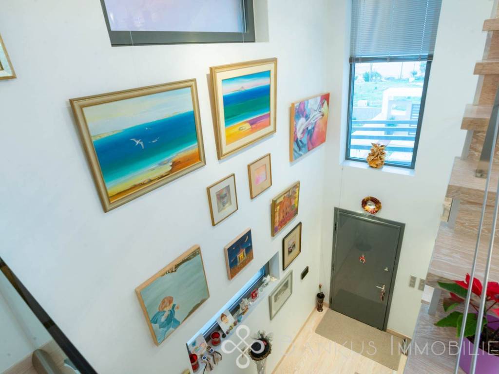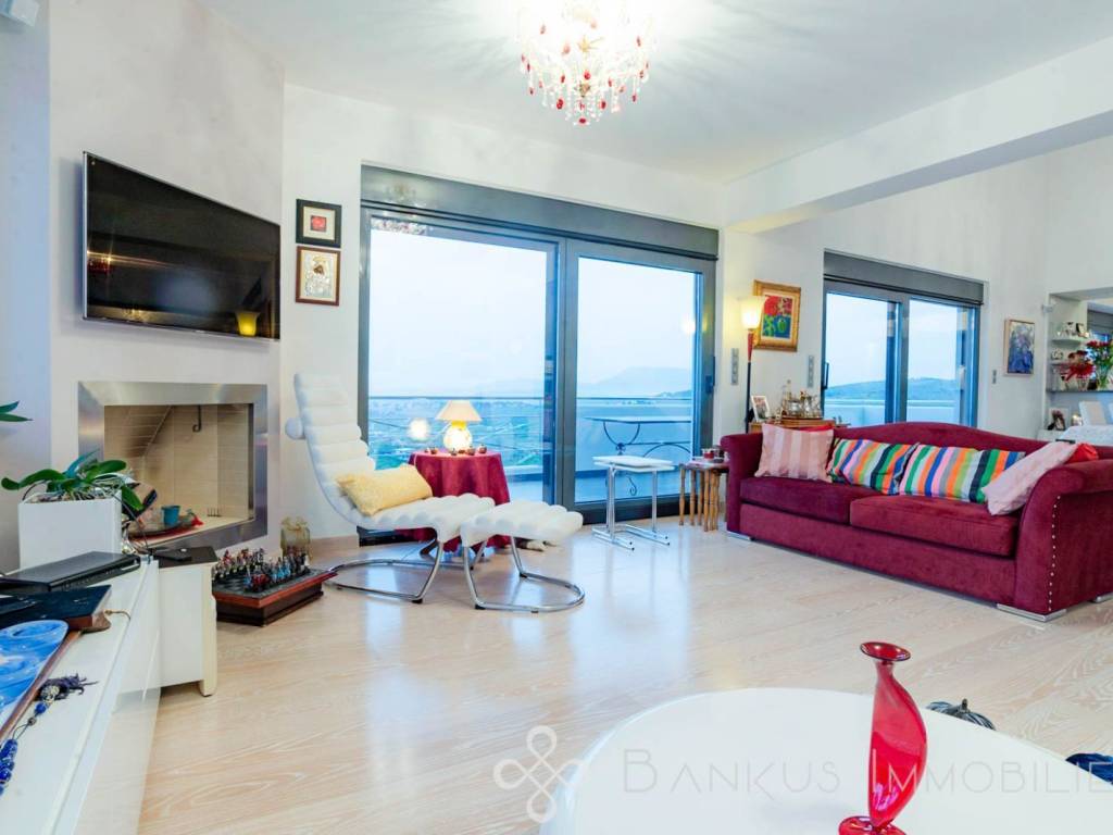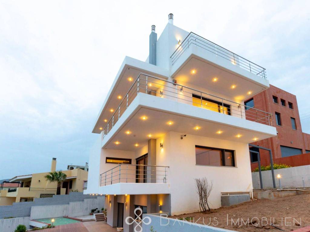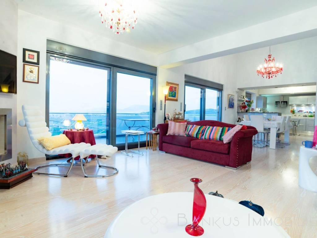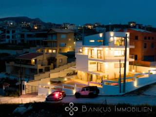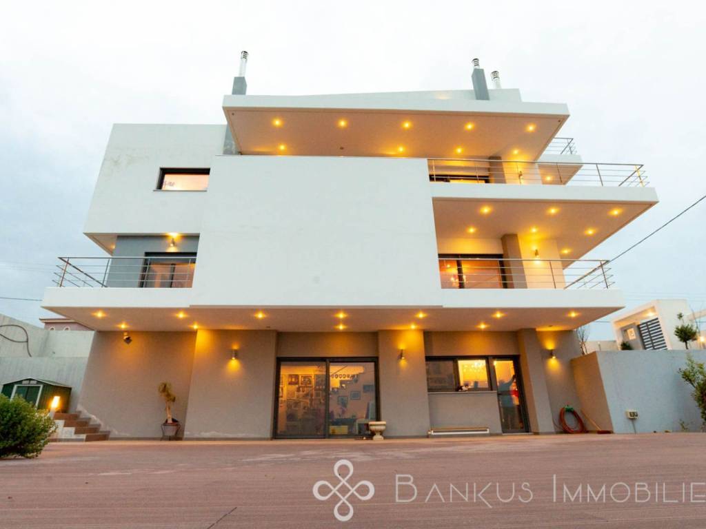 Πώληση πολυτελούς μοναδικού ακινήτου στον Νέο Βουτζά Πολυτελής, “πράσινη” πολυεπίπεδη κατοικία με μοναδική και απαράμιλλη θέα στον Ευβοϊκό κόλπο και σε ολόκληρο το Λεκανοπέδιο Αττικής, κατασκευής 2011, 489 τμ σε οικόπεδο 600τμ. Διαθέτει άδεια για πισίνα η οποία δεν έχει κατασκευαστεί και στη θέση της έχει τοποθετηθεί deck. Επίσης ασανσέρ KLEMAN 6-7 ατόμων 4 στάσεων. Επίσης είναι εγκατεστημένο σύστημα συναγερμού, τελευταίας τεχνολογίας της TECHNOLALARM. Η κατοικία βρίσκεται σε 5 επίπεδα. Στο ισόγειο υπάρχει: • Το Χωλ υποδοχής, με ύψος περίπου 5,5 μ. και φεγγίτη, εξαιρετικής ασφάλειας (COSPICO) στην οροφή • γκαρνταρόμπα επισκεπτών • το κλιμακοστάσιο • Master bedroom με δύο μπάνια εκ των οποίων το ένα με τζακούζι. • Δωμάτιο με 10 μέτρα ντουλάπες και 5 μέτρα ντουλάπα με συρόμενες πόρτες στην κρεβατοκάμαρα. 2η Κρεβατοκάμαρα με Μπανιο Ντουζ Υδρομασάζ Στον πρώτο όροφο υπάρχει μεγάλος χώρος υποδοχής με τζάκι και τραπεζαρία και με πάσο (πάνω μάρμαρο 4 μέτρα) που χωρίζει από την κουζίνα. Η κουζίνα έχει ξεχωριστό πάσο και δικό της μπαλκόνι με μοναδική θέα στη θάλασσα και τη λεκάνη. (Μία μεγάλη βεράντα, εγκαταστάσεις κήπου 10 τμ και πολυέλαιοι από 5* πολυελαίοι από Σβαροφσκι κρύσταλλα του οίκου RITZENHOFF A.E. Περιμετρικά μεγάλα μπαλκόνια. Πάνω από τον πρώτο όροφο υπάρχει σοφίτα με μεγάλο μπαλκόνι εντοιχισμένη βιβλιοθήκη από γυψοσανίδα και κουζινάκι με ψυγείο μικρό. Όλοι οι ως άνω περιγραφόμενοι χώροι διαθέτουν δρύινα πατώματα εξαιρετικής τεχνοτροπίας 2εκ μασίφ κολλητά. Από το ίδιο υλικό είναι και οι σκάλες. Το ημιυπόγειο που έχει έξοδο στο deck διαθέτει ένα μεγάλο καθιστικό με τζάκι συνεχόμενη κουζίνα με εντοιχισμένες ηλεκτρικές συσκευές AEG, μπάνιο με στήλη υδρομασάζ και κρεβατοκάμαρα (ξενώνας), ή, δωμάτιο υπηρεσίας, με μπάνιο, κουζίνα και χωριστή είσοδο ασφαλείας εσωτερική και εξωτερική. Το δάπεδο του επιπέδου αυτού είναι από γρανίτη νέα πλακάκια 60χ60. Το υπόγειο είναι 150 τμ με τρεις θέσεις πάρκινγκ και 2 ακόμη αποθήκες. Το δάπεδο είναι από βιομηχανικό μπετόν. Δύο αυτόματες γκαραζόπορτες (επαφής) μία εσωτερική και μία εξωτερική προς τη ράμπα. Στο χώρο αυτό βρίσκεται και το μηχανοστάσιο που αφορά το μπόιλερ του ζεστού νερού. Η σκεπή της κατοικίας είναι από φυσική πέτρα. Ένα τμήμα της είναι ανοιγόμενο με καλύμματα και το μπάνιο από φυσική πέτρα έχει έξοδο στο solarium. Επίσης διαθέτει ένα μεγάλο χώρο με ηλεκτρικά καλύμματα για solarium, καθιστικό με μέγεθος 30–35 τμ. Έχει βάσεις για κρεβάτια ηλιοθεραπείας και καθιστικά. Από το χώρο αυτό υπάρχουν πανοραμικές θέες από όλο το λεκανοπέδιο Αττικής προς Σούνιο και από την άλλη έως τον Ευβοϊκό & Χαλκίδα. Το ακίνητο έχει υπέροχη θέα και μοναδική αισθητική. Η κατοικία οικοδομήθηκε τον Απρίλιο 2011.