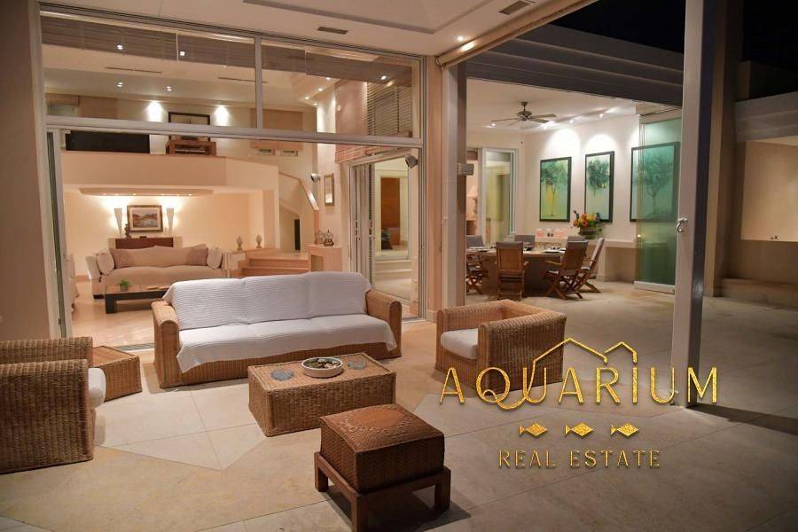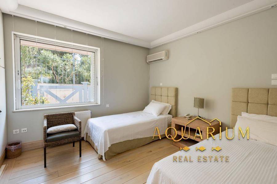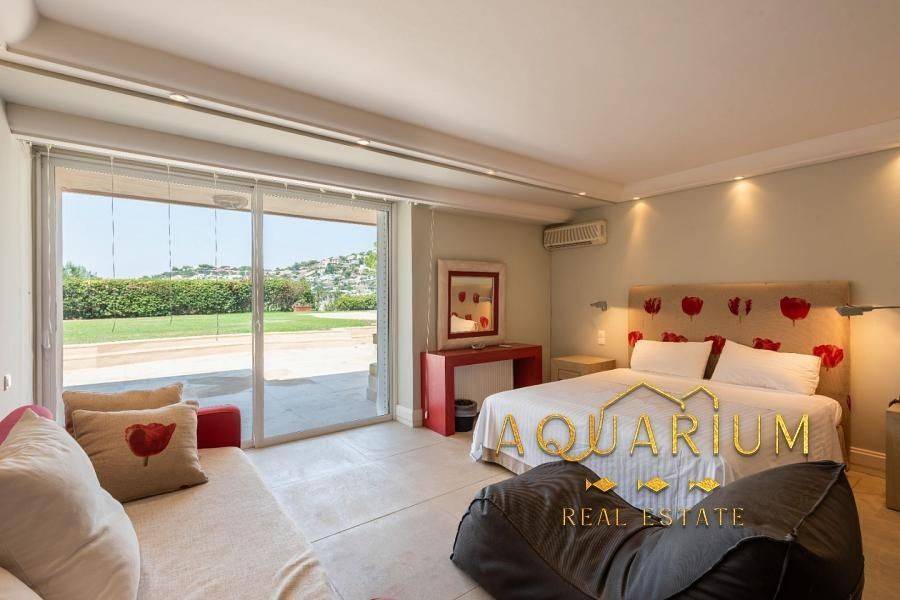Πρόκειται για μια πολυτελή, 5 υπνοδωματίων, 480m2, πλήρως επιπλωμένη παραθαλάσσια βίλα, σε δύο επίπεδα σε 1.800m2. οικόπεδο με ιδιωτική παραλία ακριβώς μπροστά στη βίλα και απεριόριστη όμορφη & μοναδική θέα στη θάλασσα και μεγάλο κήπο με πισίνα και μπαρ. Είναι ένα περιφραγμένο ακίνητο με σύστημα συναγερμού, που βρίσκεται στο πιο πολυτελές προάστιο της Αθήνας, το Λαγονήσι, μόλις 20 λεπτά από το κέντρο της Αθήνας και το αεροδρόμιο. Υπνοδωμάτια: • Master (με μεγάλο μπαλκόνι, με μπάνιο, θέα στο ηλιοβασίλεμα) • Master (με μπαλκόνι, με μπάνιο, με θέα στη θάλασσα) • 2 μονά κρεβάτια (με μπαλκόνι) • 2 μονά κρεβάτια (με παράθυρο) Επιπλέον Υπνοδωμάτιο (Προσωπικό) • 2 μονά κρεβάτια (με παράθυρο) Βρεφική κούνια / παιδικό καρεκλάκι κατόπιν αιτήματος Μπάνια / WC • Μπάνιο (με τουαλέτα, ντους, μπανιέρα, ιδιωτικό μπάνιο) • Μπάνιο (με τουαλέτα, ντους, ιδιωτικό μπάνιο) • Μπάνιο (με τουαλέτα, ντους, μπανιέρα, ιδιωτικό μπάνιο) • WC (με τουαλέτα, με ντουζιέρα) στην πισίνα • WC (με τουαλέτα, με ντουζιέρα) Κοινόχρηστοι χώροι: Τραπεζαρία Καθιστικό Piano & Playroom Χώρος γραφείου στο σπίτι Ψυχαγωγία: WiFi Internet, DVD player, δορυφορική & καλωδιακή τηλεόραση, βιντεοπαιχνίδια, πινγκ πονγκ, στόχος/βελάκια, σκάκι, πιάνο Πισίνα / Κήπος: Ιδιωτική πισίνα με θαλασσινό νερό, σκιερό pool bar, ξαπλώστρες, καθιστικό, δύο τραπεζαρίες, εξωτερική ψησταριά, υπαίθριο ντους, γκαζόν, λουλούδια. Στάθμευση: Δύο κλειστοί και δύο ανοιχτοί χώροι Αποστάσεις: 22 χλμ από Ελ. Βενιζέλος 38 χλμ από το κέντρο της Αθήνας 2 χλμ από το μεγάλο θέρετρο Λαγονήσι 31 χλμ από το λιμάνι του Λαυρίου 40 χλμ από το λιμάνι του Πειραιά