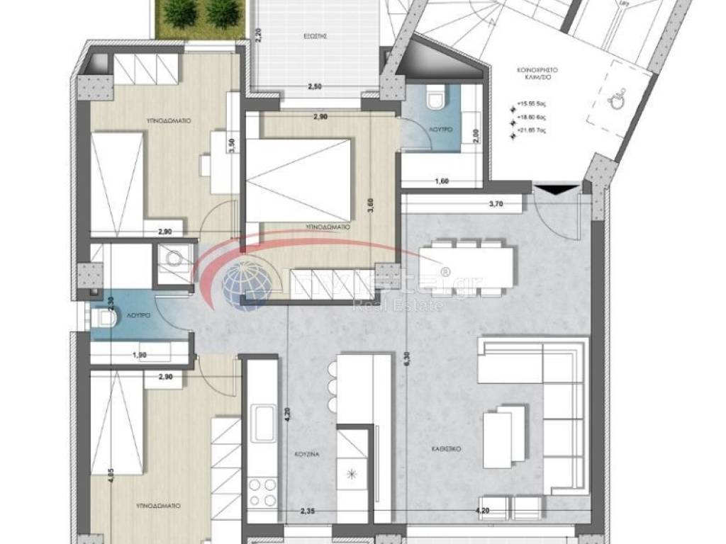 Αποτελείται από 3 υπνοδωμάτια, σαλοτραπεζαρία, κουζίνα και 2 μπάνια.