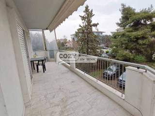 Διαμέρισμα Γωνιακό & προσόψεως με ένα ενιαίο - ευρύχωρο μπαλκόνι 87 τ.μ. (μεικτά) 68 τ.μ (καθαρά) στον 1ο όροφο με ασανσέρ σε οικοδομή κατασκευής 1994 με ατομική θέρμανση ρεύματος. Αποτελείται από 2 υπνοδωμάτια, κουζίνα, σαλόνι και μπάνιο. Επιπλέον χαρακτηριστικά: 1 θέση στάθμευσης στην πυλωτή, κουφώματα συρόμενα αλουμινίου, πόρτα απλή, δάπεδα από μάρμαρο & ξύλο, τέντες.