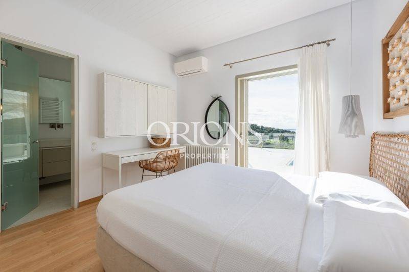 Η Πάρος, ένα νησί με γνήσια αρχιτεκτονική, μοναδικά αξιοθέατα και πλούσια ιστορική και πολιτισμική κληρονομιά. Στο Καμάρι της Πάρου, μόλις 5 λεπτά από την Αλυκή, το γνωστό παραθαλάσσιο χωριό των ψαράδων, βρίσκεται μία ιδιαίτερη βίλα, που προσφέρει ιδιωτικότητα και ηρεμία, χάρη στην ανεπανάληπτη τοποθεσία και την προνομιακή θέα της.Ένα από τα πιο εντυπωσιακά στοιχεία της είναι η καθηλωτική θέα που προσφέρει μέσω ενός μεγάλου ανοίγματος, επιτρέποντας στον επισκέπτη να απολαύσει τα απέναντι νησιά του Αιγαίου. Πρόκειται για επιπλωμένη ισόγεια βίλα συνολικής επιφάνειας 275 τ.μ., χτισμένη σε οικόπεδο 2.500 τ.μ., η οποία αποτελείται από 3 υπνοδωμάτια με τα δικά τους μπάνια και ένα WC.Μπαίνοντας στον χώρο, στα δεξιά βρίσκεται ένα ευρύχωρο και μοντέρνο καθιστικό, με κομψό τζάκι, ιδανικό για κάθε εποχή. Στα αριστερά εκτείνεται ο χώρος της τραπεζαρίας, με άμεση πρόσβαση στην πλήρως εξοπλισμένη κουζίνα, δημιουργώντας ένα λειτουργικό και αρμονικό σύνολο.Μια βίλα με χαρακτήρα και υψηλή ποιότητα κατασκευής, που συνδυάζει την πολυτέλεια με τη λειτουργικότητα. Μια σπάνια ευκαιρία να αποκτήσει κανείς κατοικία σε έναν τόπο που προσφέρει ηρεμία, φως και αυθεντική κυκλαδίτικη ομορφιά