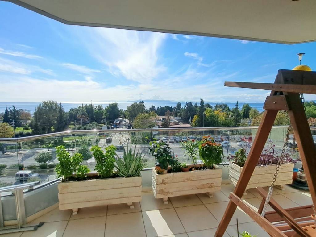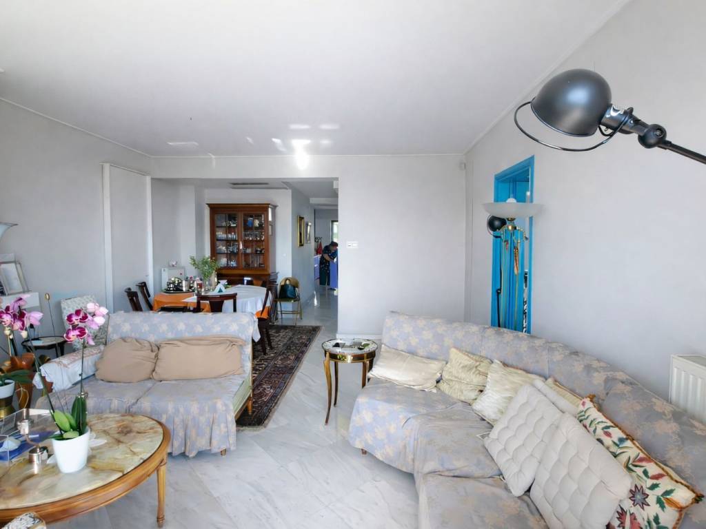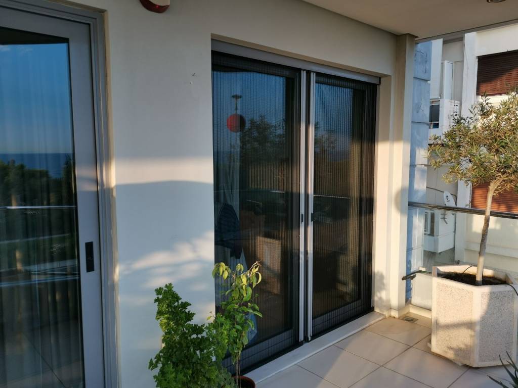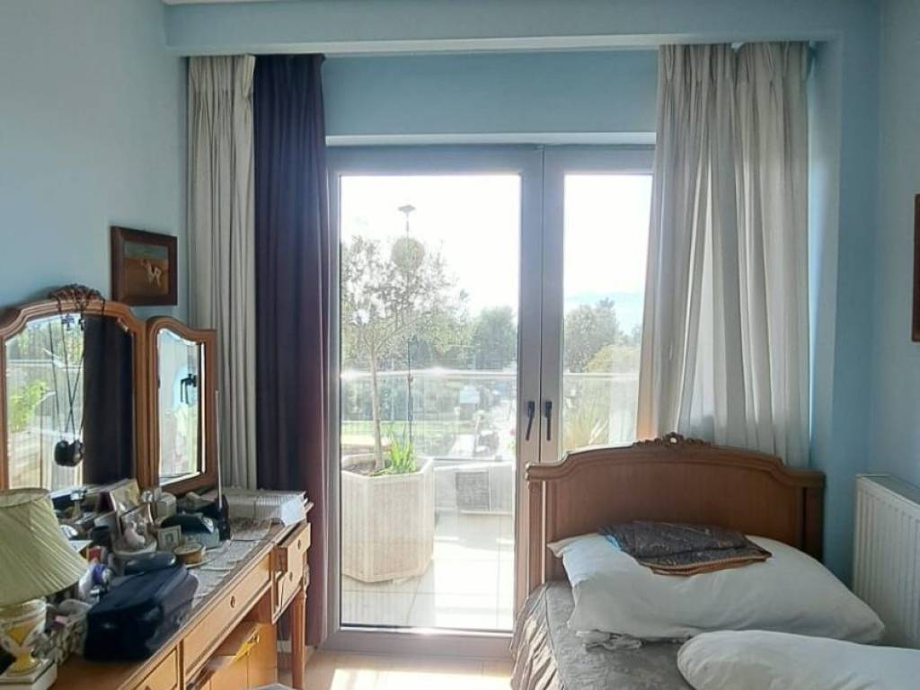 Σε μια από τις ομορφότερες αλλά και κομβικότερες τοποθεσίες της Αθηναικής Ριβιέρας, με απρόσκωπτη θέα άνω των 180 μοιρών στην κοσμοπολίτικη μαρίνα Φλοίσβου, διατίθεται προς πώληση ένα μοναδικό οροφοδιαμέρισμα συνολικής επιφάνειας 122 τμ, στον 5ο όροφο καλαίσθητης πολυκατοικίας κατασκευασμένης το 2010. Μπαίνοντας στο διαμέρισμα, μας υποδέχεται ένα ευρύχωρο και φωτεινό σαλόνι ντυμένο με μάρμαρα Διονύσου διαλογής από τον αρχιτέκτονα, με τζάκι και με 4,50 μέτρα άνοιγμα από όπου απολαμβάνουμε την μοναδική θέα στο μέτωπο της παραλίας. Την ίδια θέα έχουμε και από το πρώτο υπνοδωμάτιο με en suite μπάνιο. Εκεί, έχουμε πάτωμα από ισόβενο μασίφ δρυ, επιλογής ενώ το μπάνιο του είναι ντυμένο τόσο στο δάπεδο όσο και στους τοίχους με μάρμαρο διονύσου επιλογής. Το σαλόνι και το πρώτο υπνοδωμάτιο, εκτός από τη θέα, μοιράζονται ένα μεγάλο μπαλκόνι με αντιολισθητικό πλακάκι επιλογής, όπου κανείς μπορεί να απολαμβάνει την μαρίνα αλλά και τα ηλιοβασιλέματα. Σε περίπτωση που ο νέος ιδιοκτήτης το επιθυμήσει, το υπνοδωμάτιο αυτό μπορεί να ενοποιηθεί με το σαλόνι, ανοίγοντας περισσότερο τον χώρο και τη θέα και διατηρώντας παράλληλα το μικρότερο λουτρό. Προχωρώντας στο διάδρομο, συναντάμε την κουζίνα του διαμερίσματος, διαμορφωμένη έτσι ώστε να προσφέρει μεγάλους πάγκους εργασίας αλλά και αποθήκευσης, ενώ τα μεγάλα παράθυρα και η μπαλκονόπορτα που οδηγεί σε ένα άνετο και ανεξάρτητο μπαλκόνι, την γεμίζουν με άπλετο φως. Το μάρμαρο διονύσου άριστης ποιότητος, πρωταγωνιστεί και στην κουζίνα, ντύνοντας το δάπεδο, τους πάγκους και το νεροχύτη σε συνδυασμό με τα έπιπλα από λάκα άριστης ποιότητος. Δίπλα από την κουζίνα, συναντάμε το μεγάλο μπάνιο ντυμένο και αυτό με μάρμαρα διονύσου επιλογής τόσο στο δάπεδο και στους τοίχους, όσο και στους πάγκους με μια μπανιέρα εξαιρετικής αισθητικής από Lefroy Brooks. Όλα τα είδη υγεινής είναι επίσης από Lefroy Books. Το μεγάλο, φωτεινό υπνοδωμάτιο, με δάπεδο από ισόβενο μασίφ δρυ και μεγάλες ντουλάπες, μπορεί να φιλοξενήσει με άνεση ένα υπέρδιπλο κρεβάτι αλλά και ένα μεγάλο μπουντουάρ, ενώ διαθέτει το δικό του, ανεξάρτητο μπαλκόνι. Σε άμεση επικοινωνία με το κυρίως υπνοδωμάτιο, υπάρχει ένα μικρό δωμάτιο, διαμορφωμένο ως βεστιάριο το οποίο δύναται να αναδιαμορφωθεί σε χώρο πλυντηρίου ή/και αποθήκευσης. Το ακίνητο μετράει πολλά μέτρα σε αλουμίνια ενώ τα κουφώματα είναι ειδικών προδιαγραφών με υψηλές καμπύλες ηχομόνωσης. Στο εξαιρετικό αυτό ακίνητο, αναλογεί μια ευρύχωρη θέση στάθμευσης στο υπόγειο καθώς και μια αποθήκη. In one of the most beautiful but also the most central locations of the Athenian Riviera, with an unobstructed view of more than 180 degrees to the cosmopolitan Flisvos marina, a unique apartment with a total area of 122 m2 is available for sale, on the 5th floor of a stylish apartment in a building built in 2010. Entering the apartment, we are greeted by a spacious and bright living room covered with Dionysos marble selected by the architect, with a fireplace and with a 4.50 meter opening from where we enjoy the unique view of the beach front. We have the same view from the first bedroom with en suite bathroom. There, we have an isoven solid oak floor, while its bathroom is clad both on the floor and on the walls with Dionysus marble. The living room and the first bedroom, in addition to the view, share a large balcony with an anti-slip tile, where one can enjoy the view to the park and the sea as well as the sunsets. If the new owner wishes, this bedroom can be combined with the living room, opening up more space and the view while maintaining the smaller bathroom. Proceeding down the corridor, we find the apartment's kitchen, designed to offer large worktops as well as storage, while the large windows and the balcony door leading to a comfortable and independent balcony fill the kitchen with abundant light. The excellent quality Dionysus marble also stars in the kitchen, dressing the floor, the counters and the sink in combination with the excellent quality lacquer furniture. Next to the kitchen,