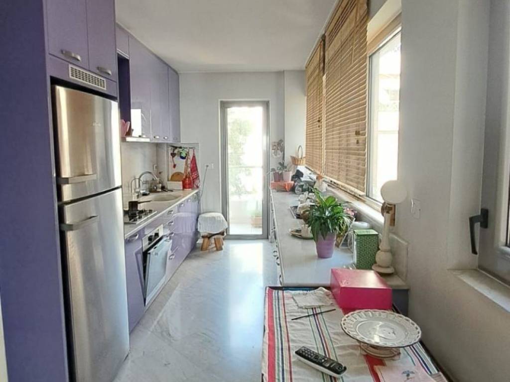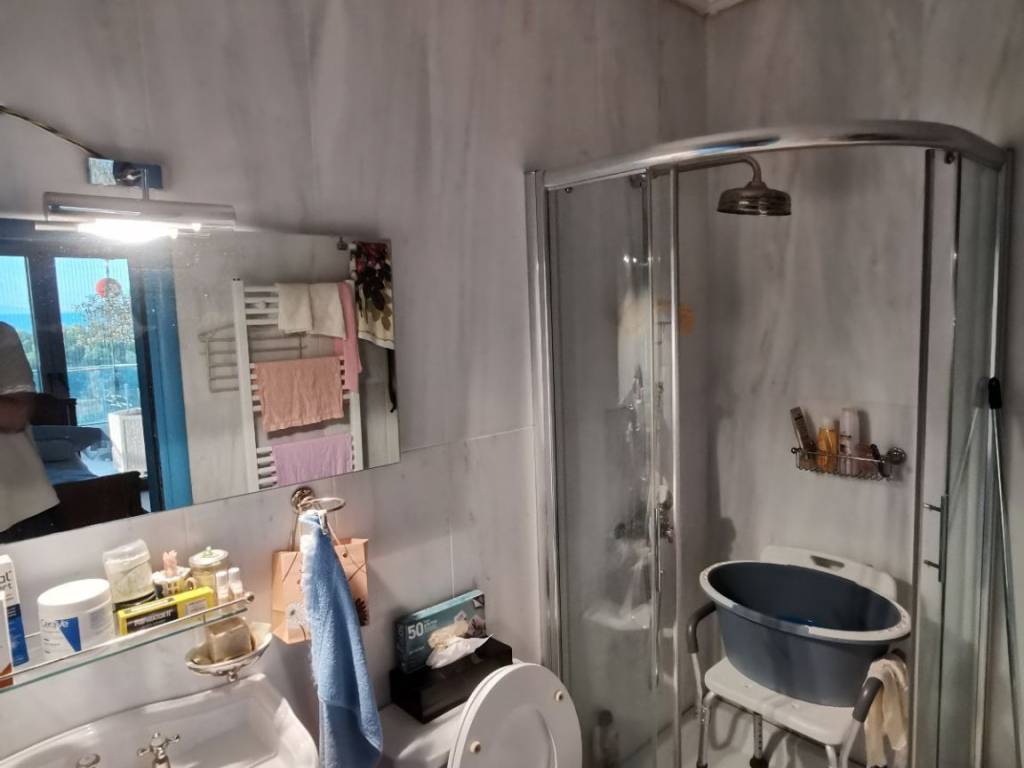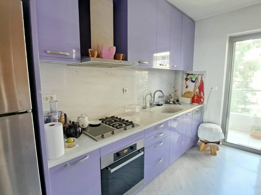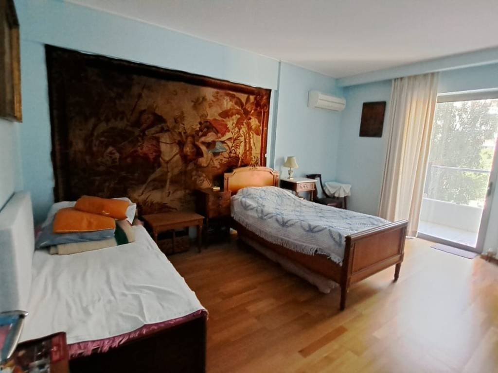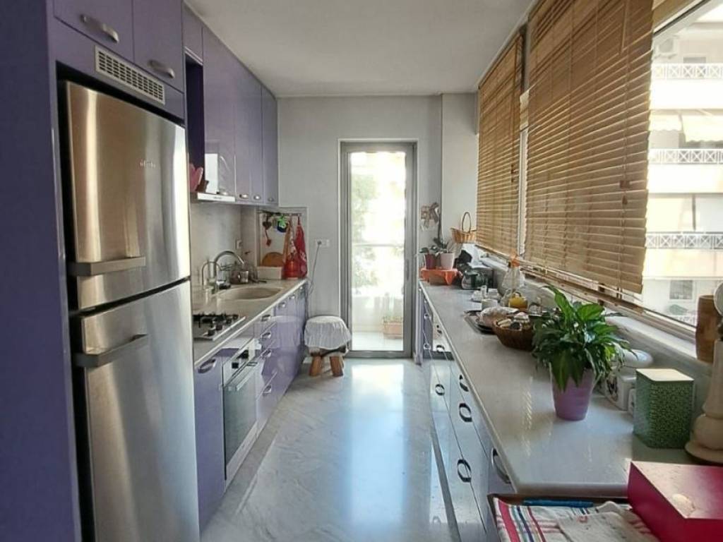 Σε μια από τις ομορφότερες αλλά και κομβικότερες τοποθεσίες της Αθηναικής Ριβιέρας, με απρόσκωπτη θέα άνω των 180 μοιρών στην κοσμοπολίτικη μαρίνα Φλοίσβου, διατίθεται προς πώληση ένα μοναδικό οροφοδιαμέρισμα συνολικής επιφάνειας 122 τμ, στον 5ο όροφο καλαίσθητης πολυκατοικίας κατασκευασμένης το 2010. Μπαίνοντας στο διαμέρισμα, μας υποδέχεται ένα ευρύχωρο και φωτεινό σαλόνι ντυμένο με μάρμαρα Διονύσου διαλογής από τον αρχιτέκτονα, με τζάκι και με 4,50 μέτρα άνοιγμα από όπου απολαμβάνουμε την μοναδική θέα στο μέτωπο της παραλίας. Την ίδια θέα έχουμε και από το πρώτο υπνοδωμάτιο με en suite μπάνιο. Εκεί, έχουμε πάτωμα από ισόβενο μασίφ δρυ, επιλογής ενώ το μπάνιο του είναι ντυμένο τόσο στο δάπεδο όσο και στους τοίχους με μάρμαρο διονύσου επιλογής. Το σαλόνι και το πρώτο υπνοδωμάτιο, εκτός από τη θέα, μοιράζονται ένα μεγάλο μπαλκόνι με αντιολισθητικό πλακάκι επιλογής, όπου κανείς μπορεί να απολαμβάνει την μαρίνα αλλά και τα ηλιοβασιλέματα. Σε περίπτωση που ο νέος ιδιοκτήτης το επιθυμήσει, το υπνοδωμάτιο αυτό μπορεί να ενοποιηθεί με το σαλόνι, ανοίγοντας περισσότερο τον χώρο και τη θέα και διατηρώντας παράλληλα το μικρότερο λουτρό. Προχωρώντας στο διάδρομο, συναντάμε την κουζίνα του διαμερίσματος, διαμορφωμένη έτσι ώστε να προσφέρει μεγάλους πάγκους εργασίας αλλά και αποθήκευσης, ενώ τα μεγάλα παράθυρα και η μπαλκονόπορτα που οδηγεί σε ένα άνετο και ανεξάρτητο μπαλκόνι, την γεμίζουν με άπλετο φως. Το μάρμαρο διονύσου άριστης ποιότητος, πρωταγωνιστεί και στην κουζίνα, ντύνοντας το δάπεδο, τους πάγκους και το νεροχύτη σε συνδυασμό με τα έπιπλα από λάκα άριστης ποιότητος. Δίπλα από την κουζίνα, συναντάμε το μεγάλο μπάνιο ντυμένο και αυτό με μάρμαρα διονύσου επιλογής τόσο στο δάπεδο και στους τοίχους, όσο και στους πάγκους με μια μπανιέρα εξαιρετικής αισθητικής από Lefroy Brooks. Όλα τα είδη υγεινής είναι επίσης από Lefroy Books. Το μεγάλο, φωτεινό υπνοδωμάτιο, με δάπεδο από ισόβενο μασίφ δρυ και μεγάλες ντουλάπες, μπορεί να φιλοξενήσει με άνεση ένα υπέρδιπλο κρεβάτι αλλά και ένα μεγάλο μπουντουάρ, ενώ διαθέτει το δικό του, ανεξάρτητο μπαλκόνι. Σε άμεση επικοινωνία με το κυρίως υπνοδωμάτιο, υπάρχει ένα μικρό δωμάτιο, διαμορφωμένο ως βεστιάριο το οποίο δύναται να αναδιαμορφωθεί σε χώρο πλυντηρίου ή/και αποθήκευσης. Το ακίνητο μετράει πολλά μέτρα σε αλουμίνια ενώ τα κουφώματα είναι ειδικών προδιαγραφών με υψηλές καμπύλες ηχομόνωσης. Στο εξαιρετικό αυτό ακίνητο, αναλογεί μια ευρύχωρη θέση στάθμευσης στο υπόγειο καθώς και μια αποθήκη. In one of the most beautiful but also the most central locations of the Athenian Riviera, with an unobstructed view of more than 180 degrees to the cosmopolitan Flisvos marina, a unique apartment with a total area of 122 m2 is available for sale, on the 5th floor of a stylish apartment in a building built in 2010. Entering the apartment, we are greeted by a spacious and bright living room covered with Dionysos marble selected by the architect, with a fireplace and with a 4.50 meter opening from where we enjoy the unique view of the beach front. We have the same view from the first bedroom with en suite bathroom. There, we have an isoven solid oak floor, while its bathroom is clad both on the floor and on the walls with Dionysus marble. The living room and the first bedroom, in addition to the view, share a large balcony with an anti-slip tile, where one can enjoy the view to the park and the sea as well as the sunsets. If the new owner wishes, this bedroom can be combined with the living room, opening up more space and the view while maintaining the smaller bathroom. Proceeding down the corridor, we find the apartment's kitchen, designed to offer large worktops as well as storage, while the large windows and the balcony door leading to a comfortable and independent balcony fill the kitchen with abundant light. The excellent quality Dionysus marble also stars in the kitchen, dressing the floor, the counters and the sink in combination with the excellent quality lacquer furniture. Next to the kitchen,