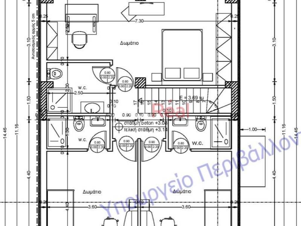 -Αποτελείται από 3 δωμάτια, σαλοκουζίνα, 3 μπάνια, Wc, laundry room.