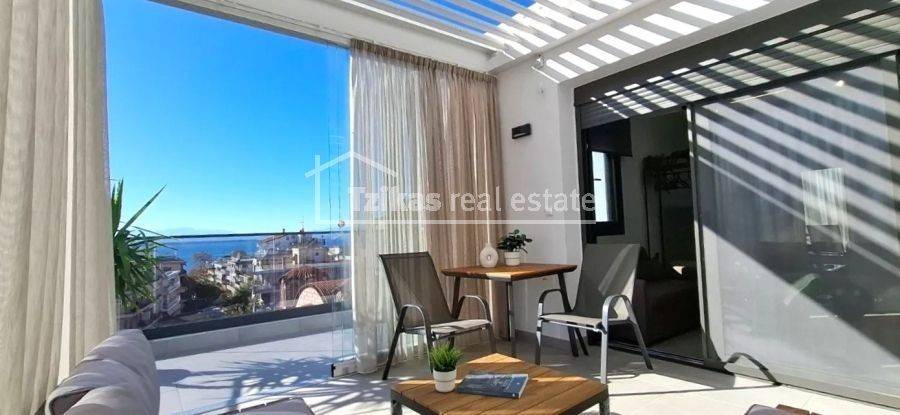 ---Μεγάλη βεράντα με απεριόριστη θέα στη θάλασσα.