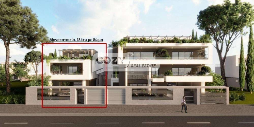 Σε συγκρότημα πολυτελούς κατασκευής Πωλείται Πλήρως ανεξάρτητη Μονοκατοικία 183τ.μ. σε ισόγειο και 1ο όροφο, με κήπο 83τμ με ιδιωτική πίσινα, φυτεμένο δώμα 50τμ με θέα θάλασσα και με ενδοδαπέδια ατομική θέρμανση με αντλία θερμότητας, ενεργειακής κλάσης Α+. Αποτελείται από 5 υπνοδωμάτια, εκ των οποίων το 1 master με βεστιάριο, 1 σαλονοκουζίνα, 3 μπάνια και αποθήκη. Διαθέτει κουφώματα αλουμινίου με διπλά τζάμια με ηλεκτροκίνητα ρολά καΙ δυνατότητα απομακρυσμένου τηλεχειρισμού ( Smart Home), θωρακισμένη πόρτα, 2 θέσεις στάθμευσης, δάπεδα από πλακάκι & ξύλο και προεγκαταστάσεις φωτοβολταικών, συναγερμού, A/C και ηλιακού