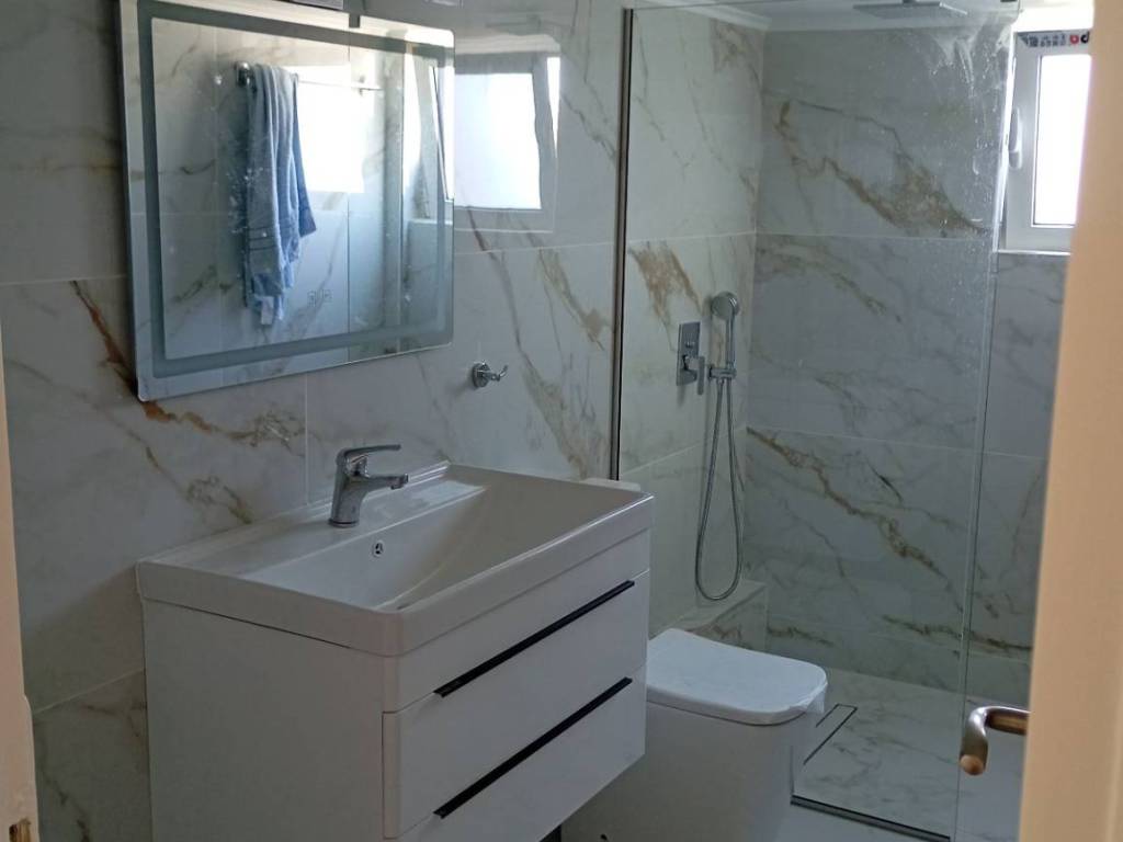 Παλαιό Φάληρο, Κέντρο - Διαμέρισμα 75τμ, 7ος όροφος, 2 υδ, σαλόνι, κουζίνα, μπάνιο πλήρως ανακαινισμένο τον 11-12/2025, αυτόνομη θέρμανση (ρεύμα), κλιματισμός, ηλιακός θερμοσίφωνας, ήσυχο, φωτεινό, θέα Ακρόπολη, ανοιχτός ορίζοντας, μπαλκόνια, καινούριες τέντες, πατάρι, κουφώματα αλουμινίου, διπλά τζάμια, σίτες, τύπος δαπέδων μάρμαρο ξύλο, ανεξάρτητη κουζίνα, πόρτα ασφαλείας.