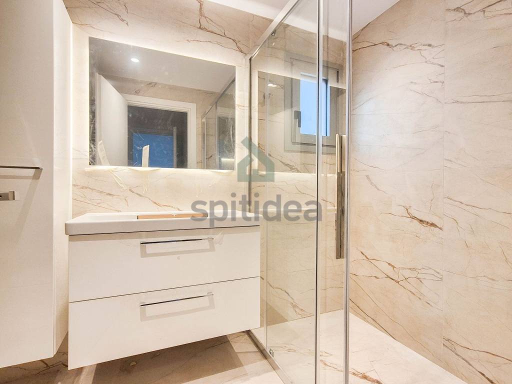 Πρόκειται για ένα διαμέρισμα επιφάνειας 115τμ στο υπερυψωμένο ισόγειο διπλοκατοικίας κατασκευής του 1985, ανακαινισμένο πλήρως το 2025. Αποτελείται απο καθιστικό, ημιανεξάρτητη κουζίνα (εξοπλισμένη με εντοιχισμένες ηλεκτρικές συσκευές) με χώρο για τραπεζαρία, 3 υπνοδωμάτια (απο τα οποία το ένα master με δικό του λουτρό) εσωτερική αποθήκη/laundry και ένα επιπλέον λουτρό. Διαθέτει κουφώματα αλουμινίου με διπλά τζάμια, σίτες και ηλεκτρικά ρολά, πόρτα ασφαλείας, προεγκατάσταση συναγερμού, αυτόνομη θέρμανση πετρελαίου, boiler, καινούργια κλιματιστικά σε όλα τα δωμάτια και στο σαλόνι καθώς και πολλούς αποθηκευτικούς χώρους. Παρέχονται επίσης μια στεγασμένη θέση στάθμευσης και εξωτερική αποθήκη περίπου 4τμ. Τα κατοικίδια επιτρέπονται. Βρίσκεται σε καλή τοποθεσία και ήσυχη γειτονιά πλησίον της κεντρικής αγοράς του Αμαρουσίου και συνολικά αποτελεί ιδανική επιλογή για άνετη και ήρεμη διαβίωση.