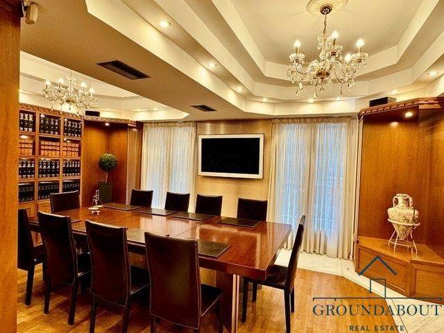 Στην καρδιά του Κολωνακίου Πολυτελές οροφοδιαμέρισμα, 30 μόλις μέτρα από την Πλατεία Κολωνακίου, ανακαινισμένο με τα καλύτερα υλικά το 2017. Μπορεί να χρησιμοποιηθεί και σαν γραφείο και σαν κατοικία. Αποτελείται από ένα χώρο υποδοχής με κυκλικούς τοίχους μοναδικής αρχιτεκτονικής, ένα σαλόνι - αίθουσα συνεδριάσεων με βιβλιοθήκες - έπιπλα κατ΄εφαρμογή, ένα επιβλητικό γραφείο υπερυψωμένο με καθρέφτη κορνίζα και έπιπλο- βιβλιοθήκη κατ΄εφαρμογή, ένα γραφείο με συρόμενη πόρτα-καθρέφτη που επικοινωνεί με την αίθουσα συνεδριάσεων, πλαισιωμένο από μια βιβλιοθήκη-βιτρίνα, μία ρεσεψιόν γραμματείας, μία κουζίνα που χρησιμοποιείται και σαν βοηθητικός χώρος και τέλος ένα διπλό μπάνιο αγγλικού τύπου. Τα πατώματα είναι συνδυασμός ξύλου και μάρμαρου Διονύσου και είναι σε απόλυτη αρμονία με την οροφή που δημιουργεί δυο οκτάγωνους θόλους στο σαλόνι. Διαθέτει κλιματισμό σε όλους τους χώρους, συναγερμό, θυροτηλεόραση και κλειστό κύκλωμα παρακολούθησης εσωτερικού και εξωτερικού χώρου. Τιμή: €1.056.000. Ground About, Τηλέφωνο Επικοινωνίας: 6944625421, email: info@groundabout.gr