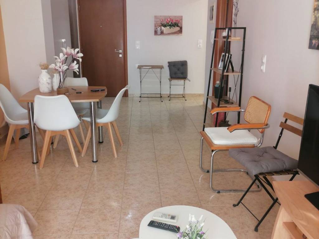Διατίθεται ανακαινισμένο διαμέρισμα 58 τ.μ. στον 1ο όροφο, πλήρως επιπλωμένο και έτοιμο για άμεση χρήση. Αποτελείται από 1 υπνοδωμάτιο, σαλόνι, κουζίνα, μπάνιο και δύο μπαλκόνια. Διαθέτει θέρμανση, ηλιακό θερμοσίφωνα και air condition. Διαθέσιμο όλο τον χρόνο. Ώρες επικοινωνίας 12:00-13:00 και 18:00-20:00.