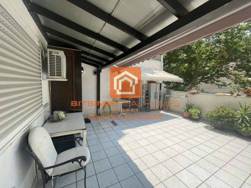 Προσεγμένη πολυκατοικία με έτος κατασκευής 1989-1990, επιπλέον διαθέτει πάρκιγκ, μπαλκόνι 30τ.μ. με σκέπαστρο και 2 τέντες.