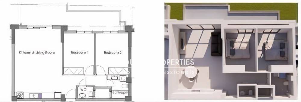 90 τ.μ., 2Δωμάτια, Μπάνιο, WC, Σαλόκουζινα
