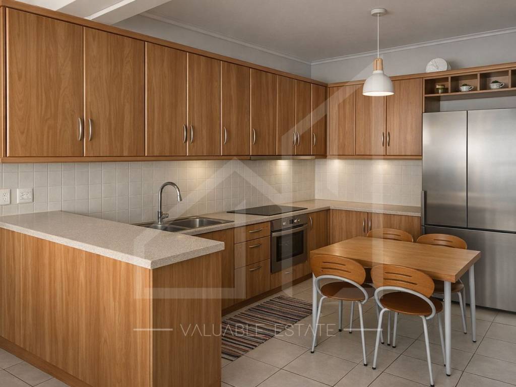 Διαθέτει μεγάλη βεράντα, κλειστή θέση στάθμευσης στην πιλοτή, αποθήκη στο υπόγειο, πόρτα ασφαλείας, κουφώματα αλουμινίου με διπλά τζάμια, παρκέ πατώματα στα υπνοδωμάτια, πλακάκι στους υπόλοιπους χώρους, αυτόνομη θέρμανση φυσικού αερίου, κλιματισμό, τζάκι και τέντες.