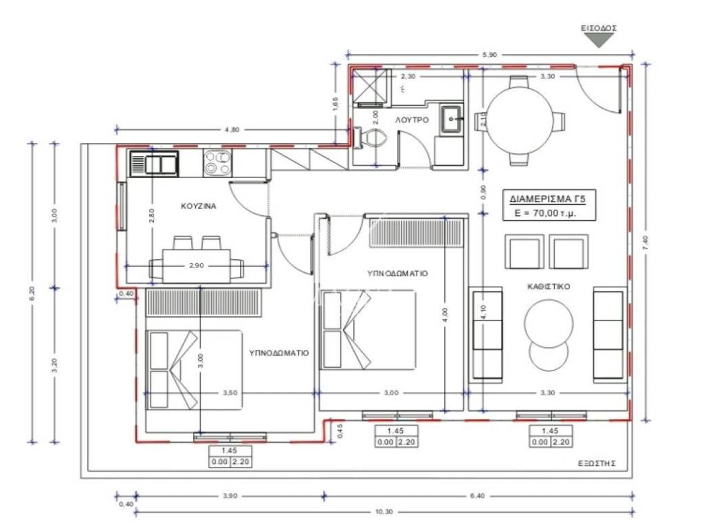 Αποτελείται από 1 υπνοδωμάτιο, ευρύχωρο σαλόνι, χώρο υποδοχής, κουζίνα και μπάνιο. Διαθέτει κουφώματα αλουμινίου με διπλά τζάμια, πόρτα ασφαλείας, πατώματα από ξύλο και πλακάκι, 2 κλιματιστικά και τέντες. Είναι κατασκευής του 1972 και έχει ανακαινιστεί πλήρως το 2015. Στο χώρο του σαλονιού πριν την ανακαίνιση υπήρχε δεύτερο υπνοδωμάτιο, το οποίο μπορεί να επανέλθει εύκολα με μικρή μετατροπή. Βρίσκεται σε ιδανικό σημείο, συνδυάζοντας την άμεση πρόσβαση στο κέντρο της πόλης με την ησυχία της γειτονιάς.