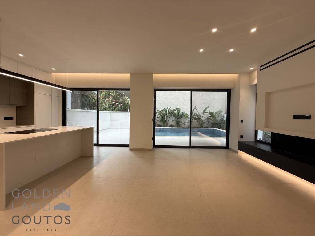 Προς πώληση σύγχρονη, πολυτελής μεζονέτα δύο επιπέδων στον Άλιμος, σε προνομιακή και ήσυχη γωνιακή τοποθεσία, σε κοντινή απόσταση από μέσα μαζικής μεταφοράς, αγορά, καφέ και εστιατόρια, προσφέροντας τον ιδανικό συνδυασμό άνεσης, ιδιωτικότητας και ποιοτικής διαβίωσης. Η κατοικία αναπτύσσεται στο ισόγειο και στον 1ο όροφο, με επιφάνεια 148,57 τ.μ., ενώ διαθέτει επιπλέον υπόγειο 40,80 τ.μ., διαμορφώνοντας συνολική επιφάνεια περίπου 189 τ.μ., σε οικόπεδο 275 τ.μ.. Ο βορειοανατολικός προσανατολισμός, η πρόσοψη και τα μεγάλα ανοίγματα εξασφαλίζουν άπλετο φυσικό φως σε όλους τους χώρους. Στο ισόγειο συναντάμε έναν φωτεινό ενιαίο χώρο σαλονιού–τραπεζαρίας με τζάκι βιοαιθανόλης και μοντέρνα ανοιχτή κουζίνα, καθώς και ένα master υπνοδωμάτιο και ένα WC επισκεπτών, με άμεση έξοδο στον κήπο και την πισίνα. Μέσω εσωτερικής ξύλινης σκάλας οδηγούμαστε στον 1ο όροφο, όπου βρίσκονται δύο επιπλέον master υπνοδωμάτια, εκ των οποίων το ένα ιδιαίτερα ευρύχωρο, με walk-in closet. Το υπόγειο (40,80 τ.μ.) χωρίζεται σε δύο λειτουργικά τμήματα: • χώρος με κουζινάκι, μπάνιο και δωμάτιο με φυσικό φωτισμό, ιδανικό ως ξενώνας, δωμάτιο υπηρεσίας ή γραφείο • ξεχωριστή αποθήκη Οι εξωτερικοί χώροι περιλαμβάνουν ιδιωτικό κήπο, πισίνα και άνετη αυλή, ιδανικούς για στιγμές χαλάρωσης και φιλοξενίας, ενώ διατίθεται μία ανοιχτή θέση στάθμευσης. Η κατοικία κατασκευάστηκε το 2025 με ενεργειακή κλάση Α+ και διαθέτει αυτόνομη θέρμανση με αντλία θερμότητας, ενδοδαπέδια θέρμανση, κλιματισμό, boiler, κουφώματα αλουμινίου με τριπλά ενεργειακά τζάμια, σίτες, δάπεδα ξύλου σε όλους τους χώρους, πόρτα ασφαλείας, συναγερμό, κάμερες CCTV, ηλεκτρικές συσκευές, υποδομή smart home και πρόβλεψη φόρτισης ηλεκτρικού οχήματος. Επιτρέπονται κατοικίδια. Μια φωτεινή, μοντέρνα και ενεργειακά αποδοτική κατοικία, ιδανική για όσους αναζητούν πολυτέλεια, ιδιωτικότητα και αναβαθμισμένο τρόπο ζωής στα Νότια Προάστια της Αθήνα.