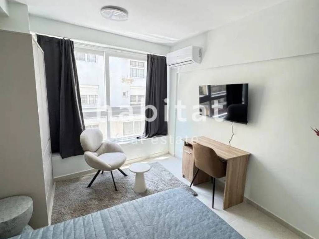 Ενοικιάζεται προσφάτως ανακαινισμένο studio 40 τ.μ. στον 4ο όροφο πολυκατοικίας 8 ορόφων με ασανσέρ, σε οικόπεδο 300 τ.μ. με πρόσοψη 25 μ. Το ακίνητο κατασκευάστηκε το 1980 και έχει ανακαινιστεί πλήρως. Αποτελείται από ενιαίο χώρο σαλονιού–κουζίνας και μπάνιο.