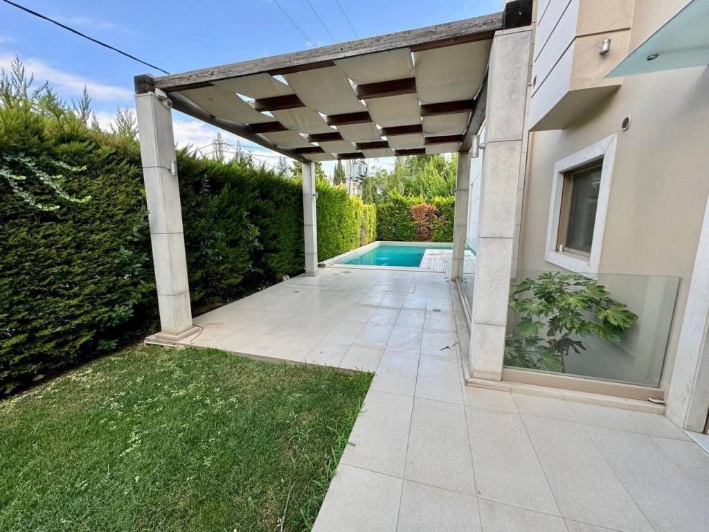 Πολυτελής γωνιακή μεζονέτα 360 τ.μ. σε δύο επίπεδα, με ιδιωτική πισίνα και όμορφα διαμορφωμένο κήπο, σε άριστη κατάσταση, στην καρδιά της Κηφισιάς, λίγα βήματα από την πλατεία Κεφαλαρίου. Το ακίνητο διαθέτει τρεις υπόγειες θέσεις στάθμευσης, αποθήκη και αυτόνομη ενδοδαπέδια θέρμανση με φυσικό αέριο. Στο κυρίως επίπεδο αναπτύσσεται ένας ιδιαίτερα ευρύχωρος χώρος υποδοχής με σαλόνι - τραπεζαρία και τζάκι, ξεχωριστή κουζίνα, δύο master υπνοδωμάτια και WC επισκεπτών. Στο κάτω επίπεδο βρίσκονται δύο επιπλέον υπνοδωμάτια με δύο μπάνια, ένας μεγάλος χώρος playroom, δωμάτιο υπηρεσίας με μπάνιο, laundry room και αποθήκη.
