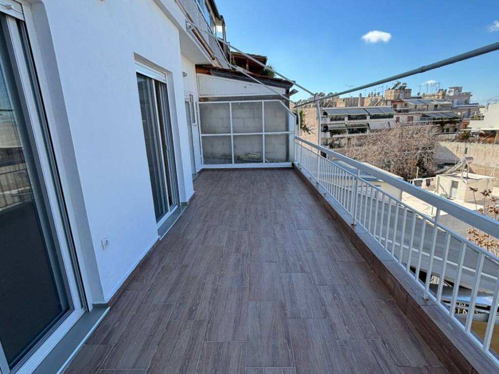 ΑΝΑΚΑΙΝΙΣΜΕΝΟ (2025) , διαμπερές ΡΕΤΙΡΕ 72 τ.μ. στον 4ο όροφο, προσόψεως. Διαθέτει μεγάλη βεράντα 40 τ.μ. και επιπλέον μπαλκόνι στην πίσω πλευρά. Περιλαμβάνει 2 υπνοδωμάτια με καινούριες ντουλάπες, ενιαίο χώρο κουζίνας – σαλονιού και 1 μπάνιο. Έχουν τοποθετηθεί καινούρια πλακάκια, κουφώματα αλουμινίου και πόρτα ασφαλείας. Βρίσκεται σε προνομιακή τοποθεσία, ανάμεσα στις οδούς Λιοσίων και Στρατηγού Καλλάρη, μόλις •800 μ. από τον σταθμό Κάτω Πατησίων.