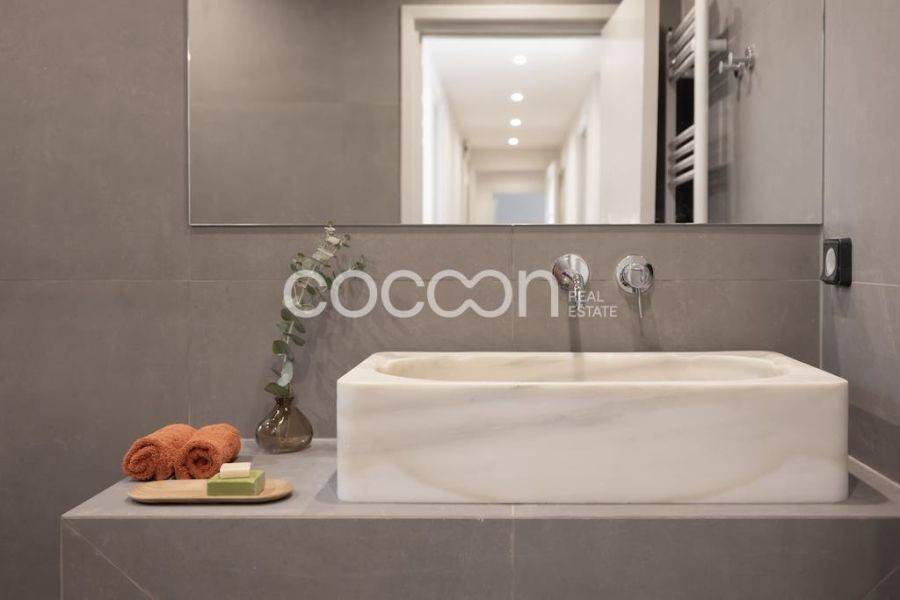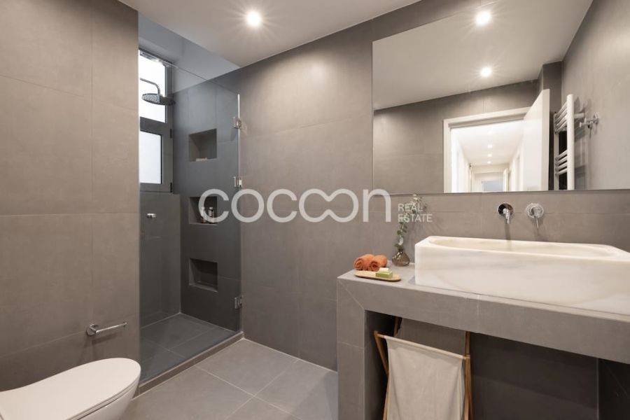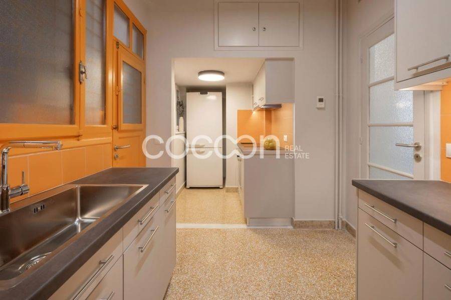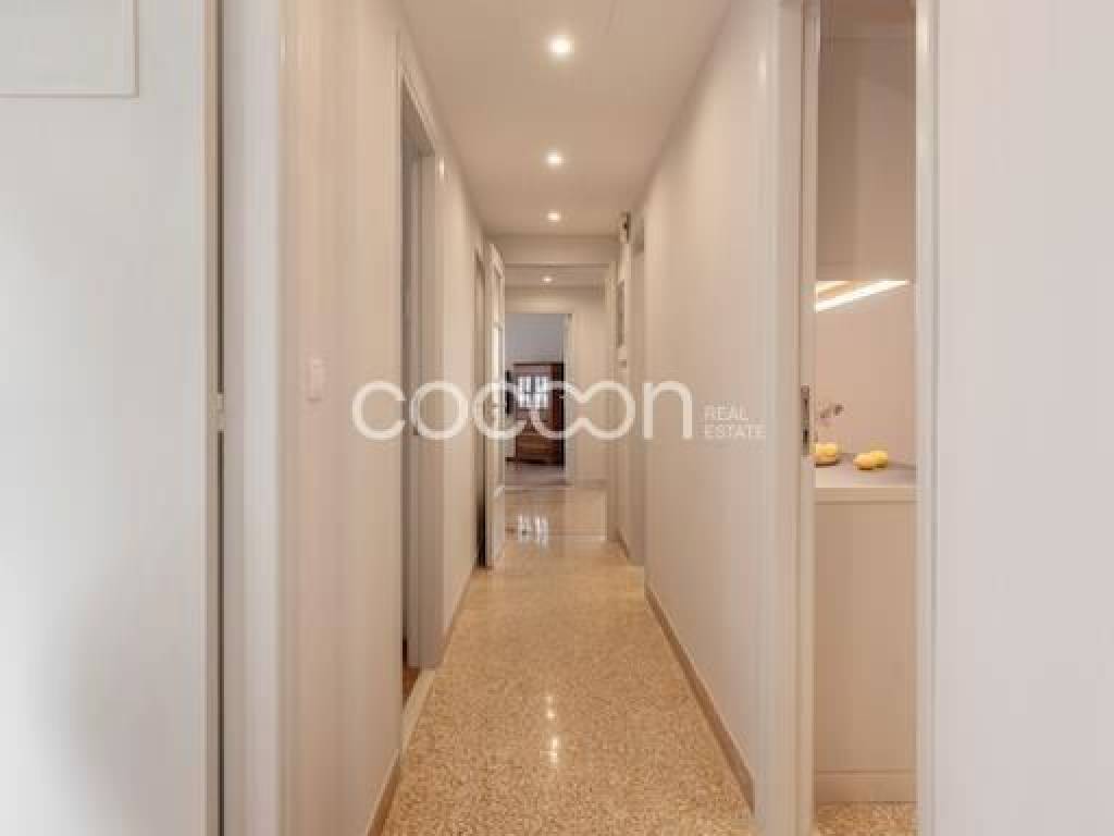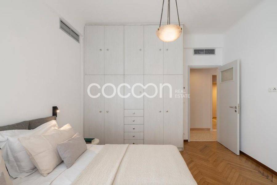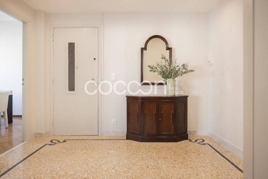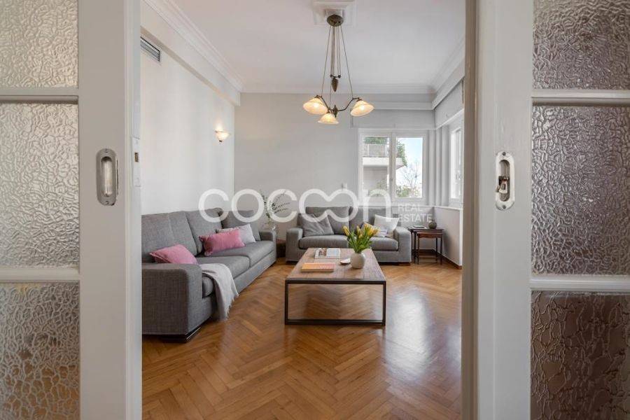 Επιπλωμένο ανακαινισμένο διαμέρισμα 117τ.μ. στον 3ο όροφο γωνιακής πολυκατοικία κατασκευ΄ής 1952 στα Εξάρχεια. Το διαμέρισμα ανακαινίστηκε το 2025 και αποτελείται από χωλ εισόδου, σαλόνι, τραπεζαρία (με ενδιάμεση πόρτα που ανοίγει και γίνεται ο χώρος ενιαίος), κουζίνα, 2 υπνοδωμάτια και γραφείο με καναπέ-κρεβάτι που μπορεί να χρησιμοποιηθεί και ως ξενώνας, 2 μπάνια. Περισσότερα χαρακτηριστικά: - φωτεινό - ξύλινα παράθυρα με διπλά τζάμια - θερμοπρόσoψη - ηλεκτρικά ρολά - ατομική θέρμανση/ψύξη με αντλία θερμότητας - ηλιακός - εξοπλισμένη κουζίνα