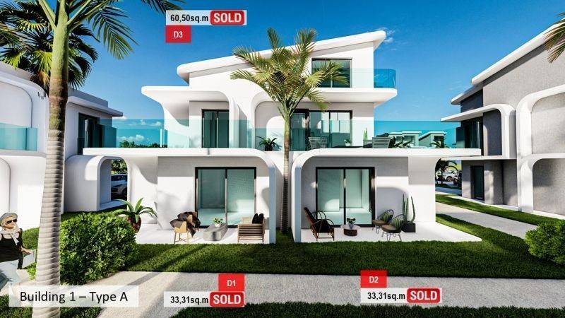 • 3 Διαμερίσματα ορόφου με σοφίτα 60,50 τ.μ., που αποτελούνται από σαλοκουζίνα, δύο υπνοδωμάτια και δύο μπάνια.