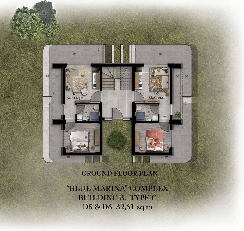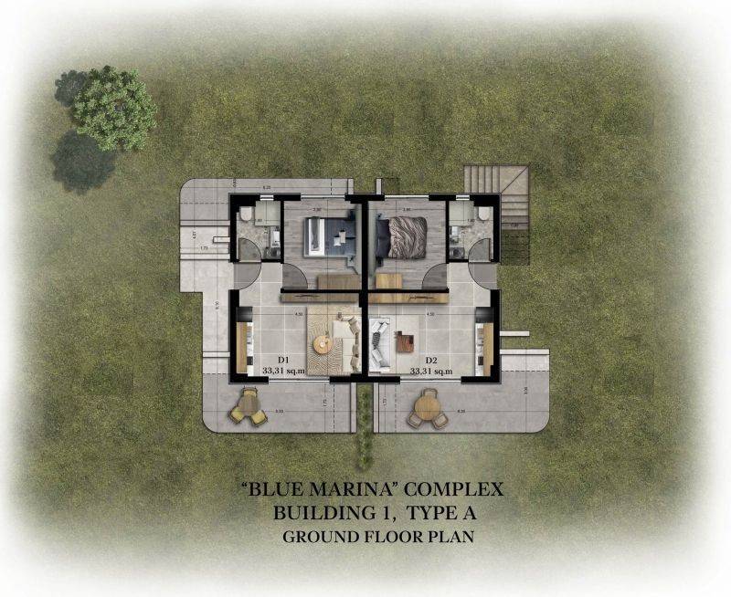 • 6 Διαμερίσματα ισογείου 33,31 τ.μ., που αποτελούνται από σαλοκουζίνα, ένα υπνοδωμάτιο και ένα μπάνιο.