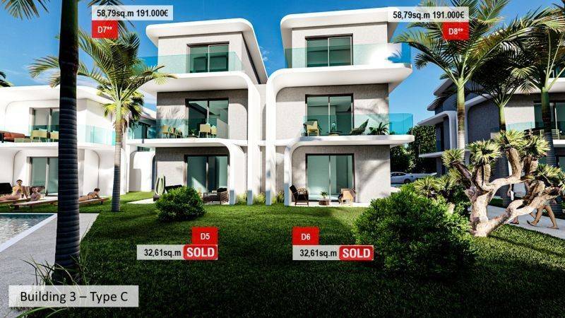 • 24 Διαμερίσματα ισογείου 32,61 τ.μ. από σαλοκουζίνα, ένα υπνοδωμάτιο και ένα μπάνιο.