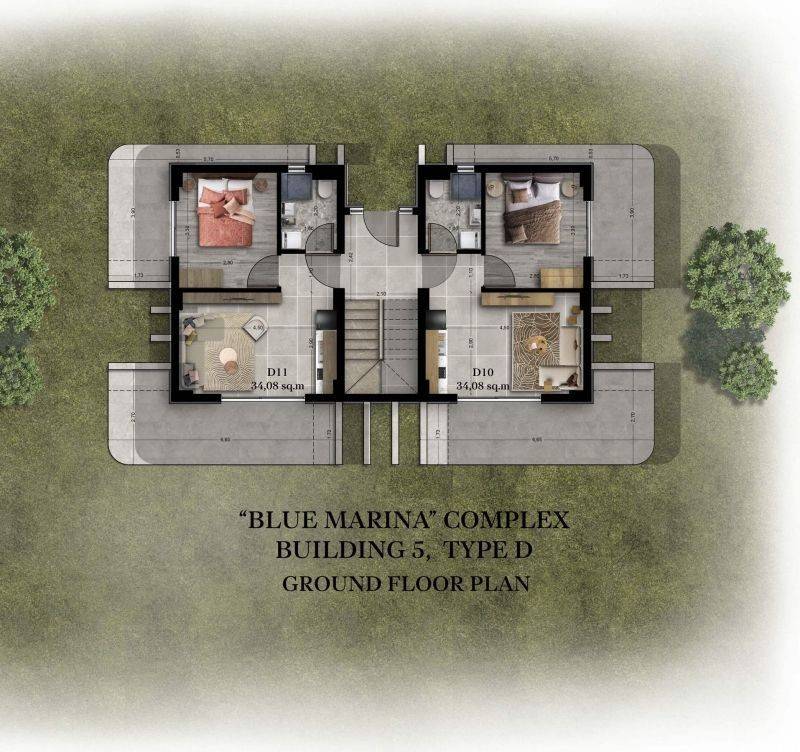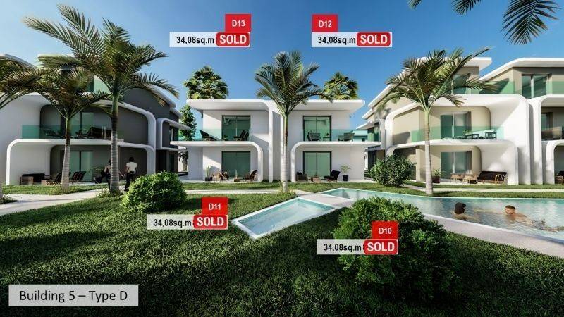 • 10 Διαμερίσματα ισογείου 34,08 τ.μ., που αποτελούνται από σαλοκουζίνα, ένα υπνοδωμάτιο και ένα μπάνιο.