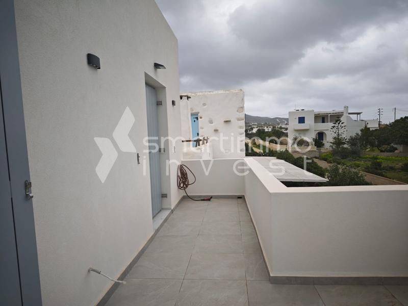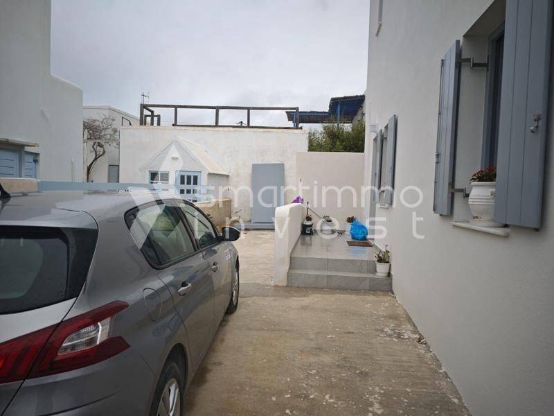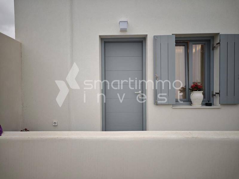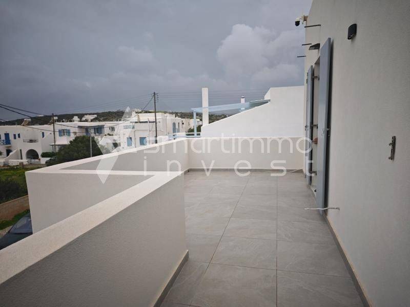 Πωλείται σύγχρονη μεζονέτα συνολικής επιφάνειας 118 τ.μ. στην περιοχή Αλυκή της Πάρου, σε ήσυχο οικιστικό περιβάλλον και σε απόσταση περίπου 800 μέτρων από τη θάλασσα. Το ακίνητο είναι νεόδμητο, κατασκευής 2025, ενεργειακής κλάσης Α+, και αναπτύσσεται σε δύο επίπεδα, προσφέροντας άνεση, λειτουργικότητα και υψηλή ποιότητα κατασκευής. Η κατοικία διαθέτει έναν φωτεινό και ενιαίο χώρο καθιστικού, τραπεζαρίας και κουζίνας, τρία υπνοδωμάτια, τρία μπάνια και εσωτερική σκάλα που συνδέει τα επίπεδα. Τα δάπεδα είναι επενδεδυμένα με πλακάκι, ενώ ο σχεδιασμός του ακινήτου εξασφαλίζει διαμπερότητα και άριστο φυσικό φωτισμό. Περιλαμβάνονται κλιματισμός, ηλιακός θερμοσίφωνας, δορυφορική κεραία, καθώς και υποδομή φόρτισης ηλεκτρικού αυτοκινήτου. Στον εξωτερικό χώρο συναντάμε ιδιωτικό κήπο και βεράντα περίπου 8 τ.μ., με νοτιοδυτικό προσανατολισμό, ιδανικά για χαλάρωση και υπαίθρια διαβίωση. Το ακίνητο βρίσκεται εντός οικιστικής ζώνης, με εύκολη πρόσβαση από χωματόδρομο, και συνοδεύεται από αποθήκη 6 τ.μ. Αποτελεί εξαιρετική επιλογή τόσο για ιδιωτική κατοικία ή εξοχική χρήση, όσο και για επενδυτική αξιοποίηση ή τουριστική ενοικίαση, σε μία από τις πλέον δημοφιλείς περιοχές της Πάρου.