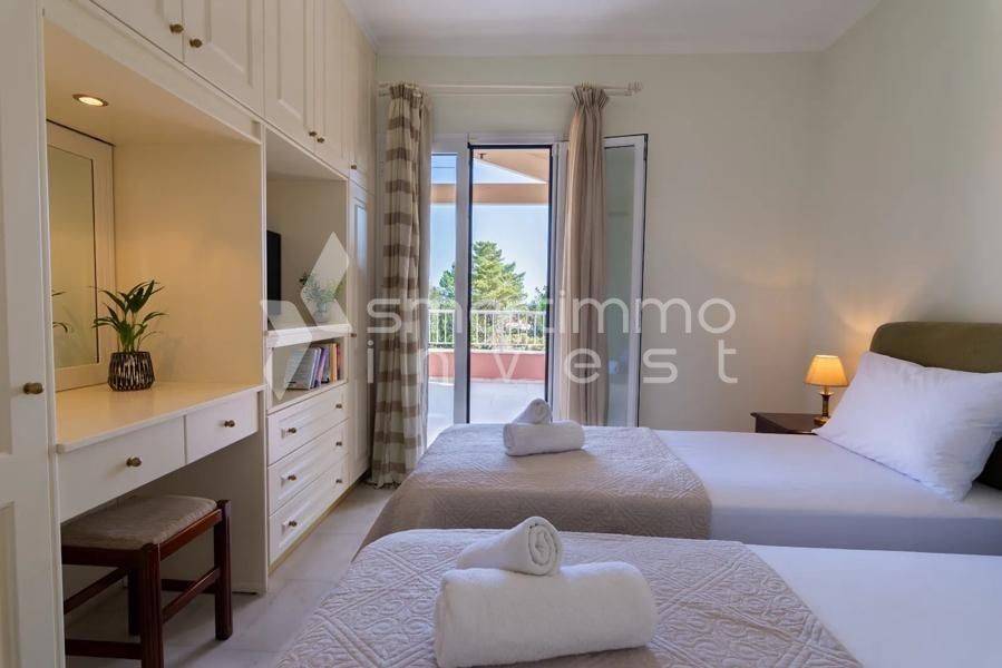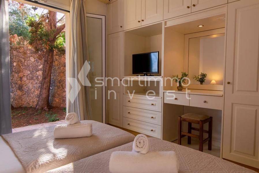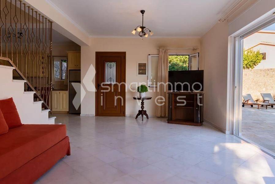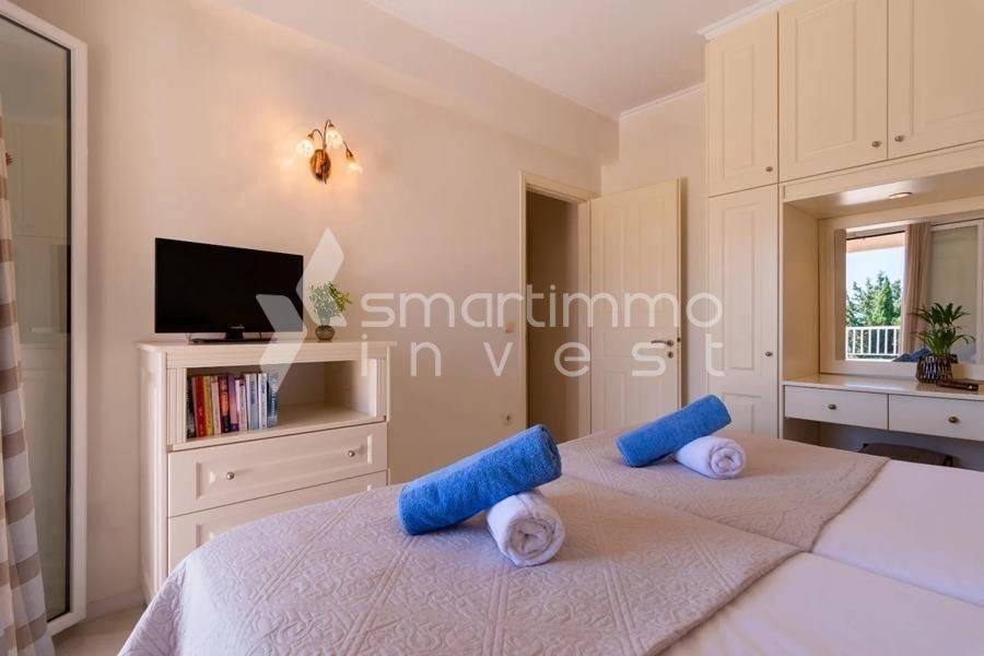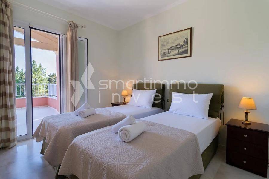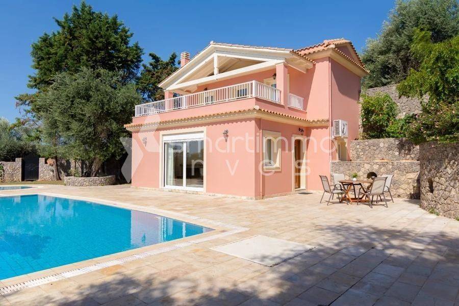 Πωλείται πολυτελής και πλήρως επιπλωμένη βίλα συνολικής επιφάνειας 135 τ.μ., σε οικόπεδο 1.000 τ.μ., σε προνομιακή και ήσυχη τοποθεσία στις Φαιάκες Κέρκυρας. Η κατοικία αναπτύσσεται σε δύο επίπεδα και διαθέτει τρία υπνοδωμάτια, τρία μπάνια, άνετο σαλόνι και λειτουργική κουζίνα, προσφέροντας άνεση και ιδιωτικότητα τόσο για ιδιοκατοίκηση όσο και για εξοχική χρήση ή τουριστική εκμετάλλευση υψηλών προδιαγραφών. Το ακίνητο είναι ανακαινισμένο, κατασκευής 2005, με ενεργειακή κλάση Α, αυτόνομο σύστημα θέρμανσης τύπου fan coil, κλιματισμό, τζάκι, ηλιακό θερμοσίφωνα και πόρτα ασφαλείας. Στον εξωτερικό χώρο κυριαρχεί η ιδιωτική πισίνα, ο περιποιημένος κήπος και οι ευρύχωρες βεράντες με θέα, δημιουργώντας ιδανικό περιβάλλον χαλάρωσης και φιλοξενίας. Διαθέτει θέση στάθμευσης και βρίσκεται σε οικιστική ζώνη με εύκολη πρόσβαση, συνδυάζοντας απόλυτα την ηρεμία με την εγγύτητα σε βασικές υποδομές και τις παραλίες της περιοχής. Πρόκειται για μία εξαιρετική πρόταση υψηλής αισθητικής και επενδυτικής αξίας σε μία από τις πιο περιζήτητες περιοχές της Κέρκυρας.