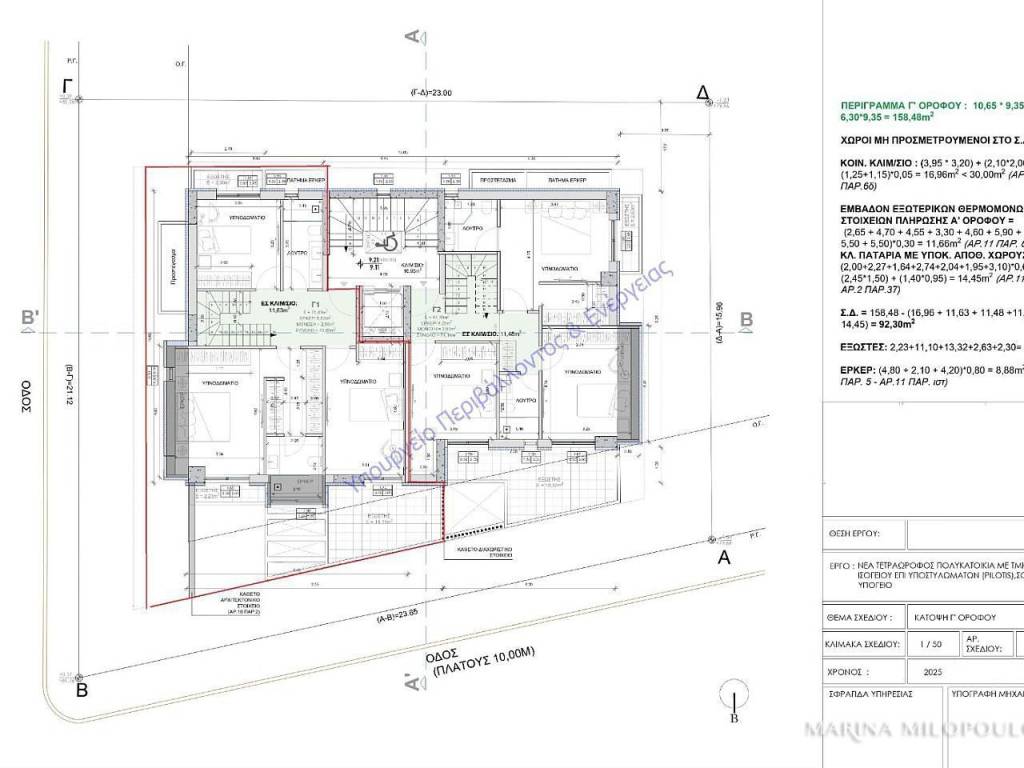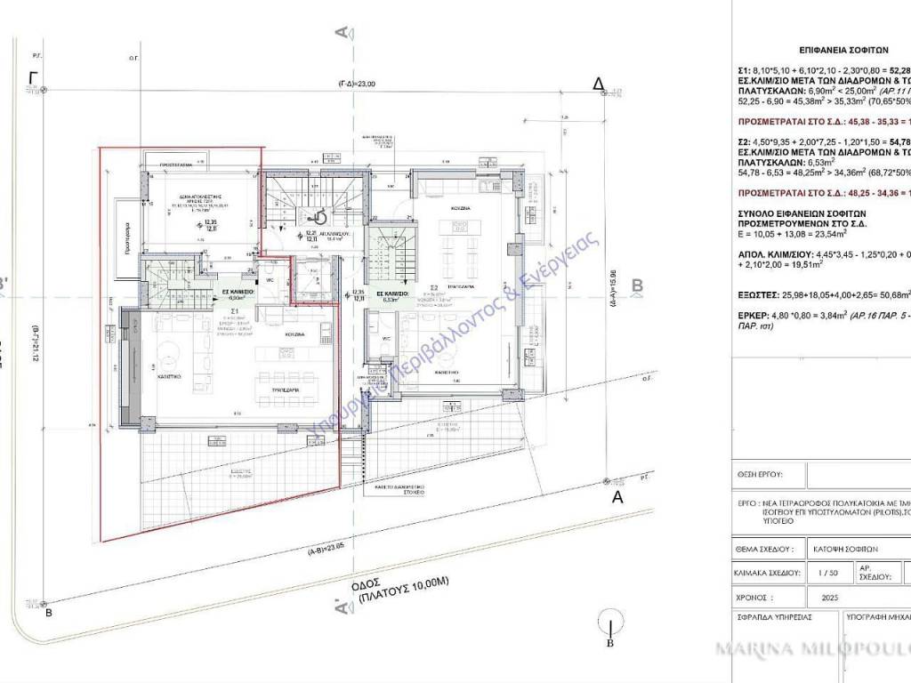 ΓΛΥΦΑΔΑ, Πυρνάρι, σε γωνιακό κτίριο υπό κατασκευή (στάδιο κατεδάφισης), γωνιακή μεζονέτα 3ου - 4ου ορόφου, 139 τμ. Βορειοανατολικού προσανατολισμού. - 3ος όροφος, 80 τμ 3 υ/δ (το ένα master με walk-in closet), όλα με έξοδο σε μπαλκόνι. - 4ος όροφος, 59 τμ, προσβάσιμος και από το κλιμακοστάσιο με το ασανσέρ, χώρος υποδοχής, τραπεζαρία, ενιαία κουζίνα, 1 wc, βεράντα προσόψεως (βορεινή) και ιδιωτικός εξώστης 16 τμ ΝοτιουΑνατολικού προσανατολισμού με θέα θάλασσα και δυνατότητα για jacuzzi. Αποτελεί μέρος 4όροφου κτιρίου, με συνολικά 5 ιδιοκτησίες, ενεργειακής κλάσης Α+. Διαθέτει αυτονομία φυσικού αερίου, ηλιακά panels, δυνατότητα για ενδοδαπέδια, δρύινα δάπεδα και επιλογή των υλικών κατασκευής από τον αγοραστή, 2 υπόγειες θέσεις στάθμευσης και μεγάλη υπόγεια αποθήκη. Τιμή ζώνης 2550€. Βρίσκεται σε ήσυχη οικιστική γειτονιά, σε υψομετρικό σημείο κοντά στους πρόποδες του Υμηττού και σε απόσταση 370 μέτρων από την αγορά της Λεωφ. Γούναρη, 2,5 χλμ από τον εμπορικό ιστό της Γλυφάδας και από την παραλία της, 5 χλμ από το Μητροπολιτικό Πάρκο Ελληνικού και 25 χλμ από το αεροδρόμιο. Εκτιμώμενη παράδοση Φεβρουάριο2 του 2028.