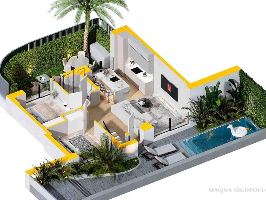 ΓΛΥΦΑΔΑ 'Ανω (λίγο κάτω από την Λ. Γούναρη) σε κτίριο υπό κατασκευή, Μεζονέτα Ισογείου - Υπογείου, 113 τμ, με ιδιωτικό κήπο και πισίνα. - Ισόγειο, 68 τμ, ενιαίος χώρος υποδοχής - τραπεζαρία - κουζίνα, 2 υ/δ 1 μπάνιο. Άμεση πρόσβαση στον κήπο με την πισίνα. - Υπόγειο, 45, τμ, με 1 master υ/δ, κουζινάκι, laundry και 1 επιπλέον wc. Διαθέτει φεγγίτη για φυσικό φωτισμό. Αποτελεί μέρος σύγχρονου 5όροφου γωνιακού κτιρίου με συνολικά 12 ιδιοκτησίες. Διαθέτει κήπο 50 τμ, πισίνα 10 τμ κλιματισμό, ενδοδαπέδια, ενεργειακά τζάμια θερμοδιακοπής, υβριδικά ηλιακά panels για ζεστό νερό, υπόγεια θέση στάθμευσης και αποθήκη. Τιμή ζώνης 2350€. Βρίσκεται πολύ κοντά σε τοπική αγορά, 2,2 χλμ από το μετρό Ελληνικού και τον εμπορικό ιστό της Γλυφάδας, 3 χλμ από την παραλία της Γλυφάδας, 3,5 χλμ από το Μητροπολιτικό Πάρκο Ελληνικού και 26 χλμ από το αεροδρόμιο. Εκτιμώμενη παράδοση Δεκέμβριος του έτους 2026.