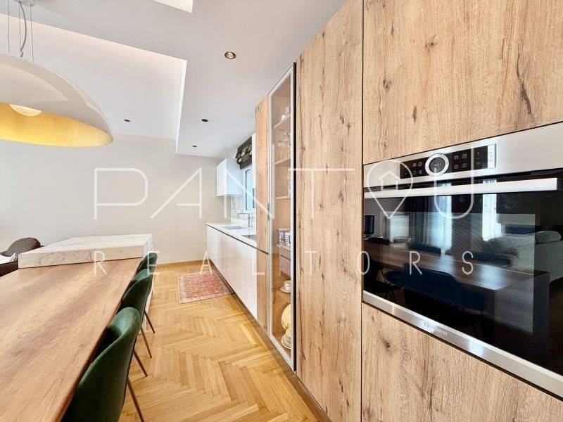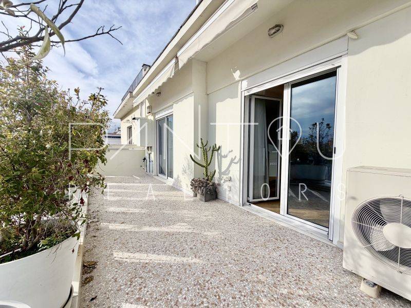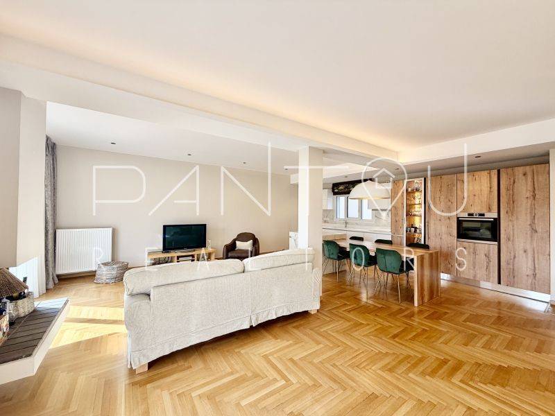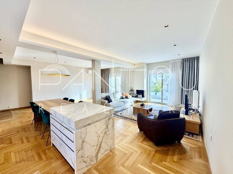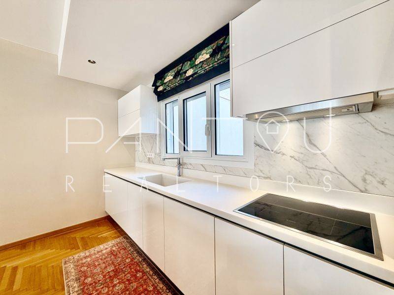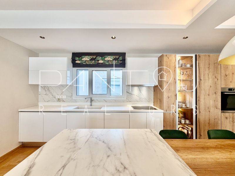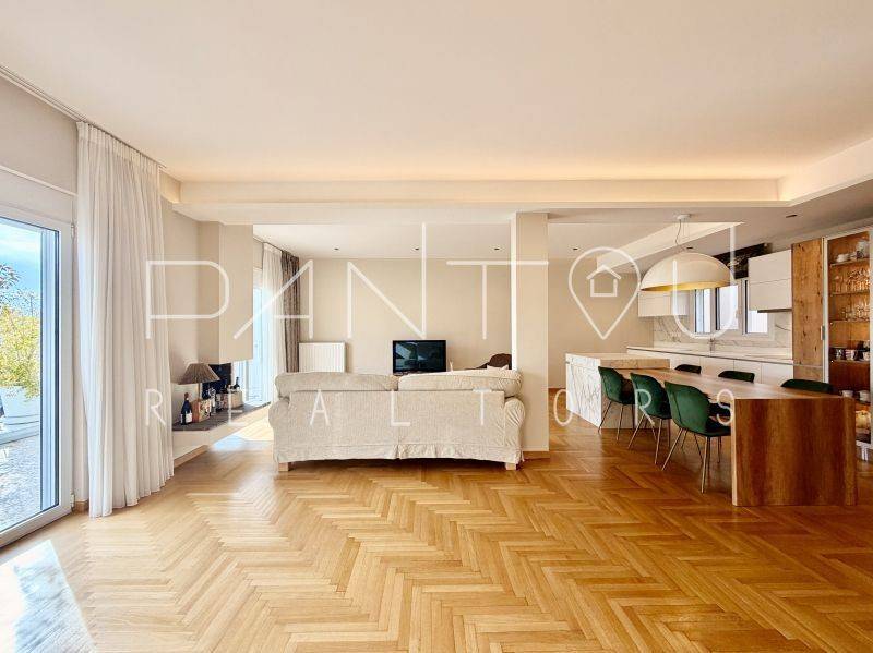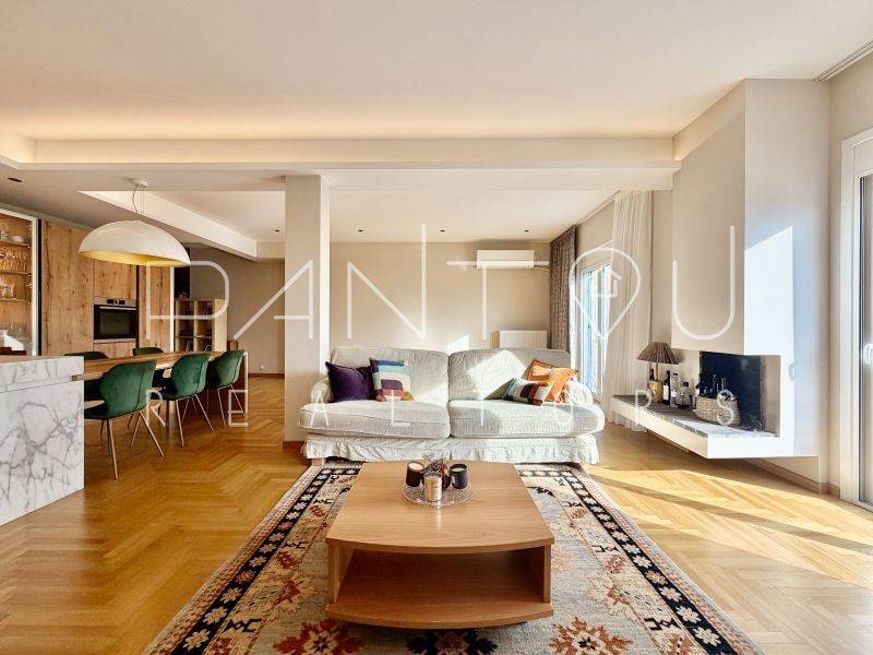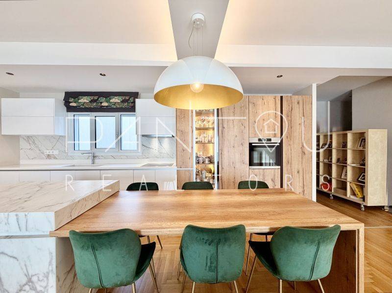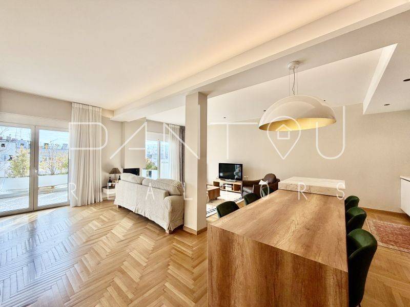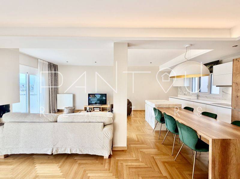 Κωδικός Ακινήτου: 7-406: Σε μια γειτονιά όπου η ιστορία της Αθήνας επαναδιατυπώνεται σε σύγχρονη αξία, αυτό το ρετιρέ δεν αποτελεί απλώς ένα διαμέρισμα — αποτελεί συμμετοχή σε έναν αστικό μετασχηματισμό που βρίσκεται ήδη σε εξέλιξη.Στον 6ο και τελευταίο όροφο μιας καλοδιατηρημένης πολυκατοικίας του 1958, με δύο ανελκυστήρες και φροντισμένη είσοδο, εκτείνεται μια κατοικία 143 τ.μ. που επανασχεδιάστηκε ριζικά το 2021. Το αποτέλεσμα δεν είναι απλώς ανακαίνιση — είναι ανακατασκευή υποδομής: νέα ηλεκτρολογικά και υδραυλικά, μόνωση και υγρομόνωση, νέες ψευδοροφές με αρχιτεκτονικό φωτισμό, αυτονομία φυσικού αερίου με ιδιόκτητο λέβητα, ενεργειακά κουφώματα και πλήρης τεχνολογική υποστήριξη καθημερινής λειτουργίας.Ο χώρος ξεδιπλώνεται σε ενιαίο καθιστικό με τζάκι και κουζίνα, όπου η σύγχρονη αίσθηση συναντά στοιχεία της αρχικής εποχής — αλουμινένιες ασπρόμαυρες πόρτες, υλικά που ισορροπούν ανάμεσα στο mid-century αποτύπωμα και τη σύγχρονη λιτότητα.