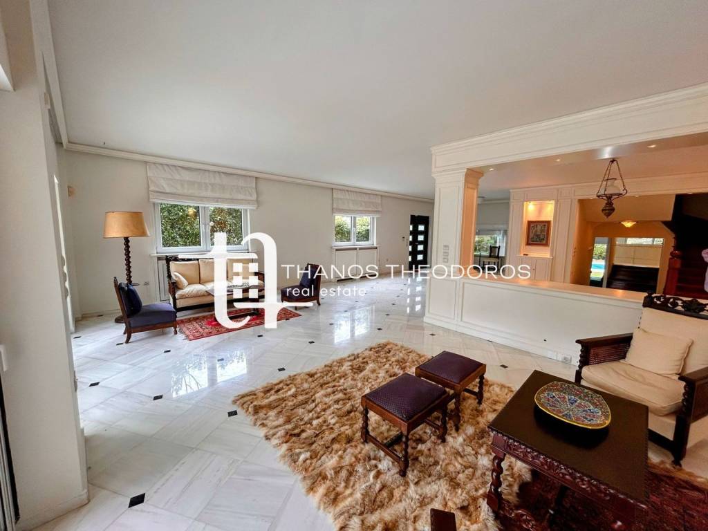 Εκάλη αριστερά σε ωραίο σημείο μεζονέτα 550 τ.μ., 3 επιπέδων συν σοφίτα με εσωτερικό ασανσέρ, κατασκευής του 2005, σε οικόπεδο δύο κατοικιών, με κοινόχρηστη πισίνα. Το ισόγειο διαθέτει μεγάλους χώρους υποδοχής μεγάλο σαλόνι με τζάκι χώρος τραπεζαρίας, ανεξάρτητη μεγάλη κουζίνα με χώρο καθιστικού και 1wc. Ο 1ος όροφος αποτελείται από 4 υ/δ (1 master), με δρύινα δάπεδα, 2 μπάνια,. Υπάρχει μεγάλη σοφίτα με δικό της μπάνιο και πρόσβαση σε βεράντα. Το playroom με χώρο καθιστικού, τζάκι, bar, μπάνιο, δωμάτιο υπηρεσίας με δικό του μπάνιο. Στην τιμή του ακινήτου περιλαμβάνονται τα έξοδα συντήρησης του κήπου και της πισίνας.