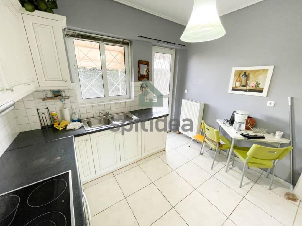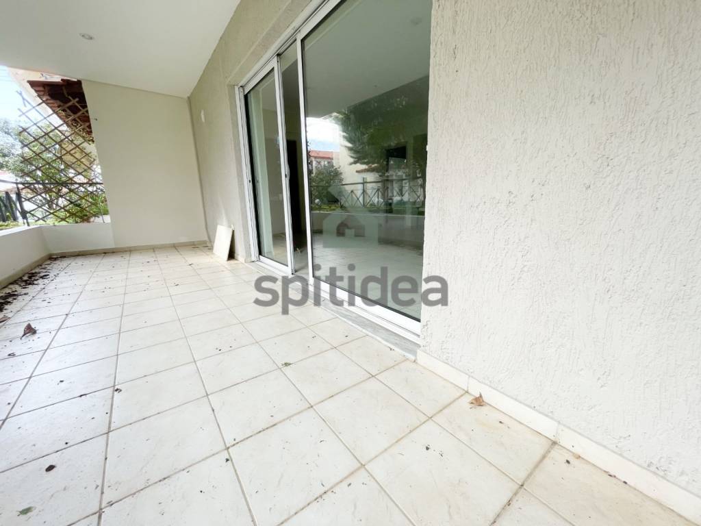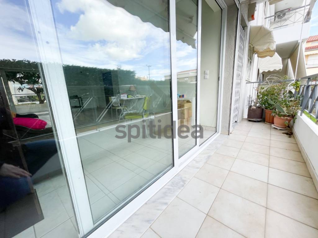 Πρόκειται για διαμέρισμα συνολικής επιφάνειας 100τμ στο ισόγειο κτηρίου κατασκευής του 2000. Είναι σε άριστη κατάσταση, διαμπερές, φωτεινό και αποτελείται από μεγάλο καθιστικό με τζάκι (μπορεί να δημιουργηθεί και 3ο υπνοδωμάτιο ή χώρος γραφείου), ανεξάρτητη κουζίνα, 2 υπνοδωμάτια και μπάνιο. Διαθέτει πόρτα ασφαλείας, συναγερμό, κουφώματα αλουμινίου με διπλά τζάμια, αυτόνομη θέρμανση πετρελαίου, αποθήκη 10τμ, μπαλκόνια σε όλες τις πλευρές και μεγάλη μπροστινή βεράντα, ενώ δίδεται και μια θέση στάθμευσης σε υπόγειο γκαράζ. Βρίσκεται σε όμορφο συγκρότημα με καλοδιατηρημένο κοινόχρηστο κήπο, σε πολύ καλή περιοχή που συνδυάζει ησυχία με πρόσβαση σε σχολεία, αγορά και συγκοινωνίες και αποτελεί εξαιρετική επιλογή για οικογένειες.