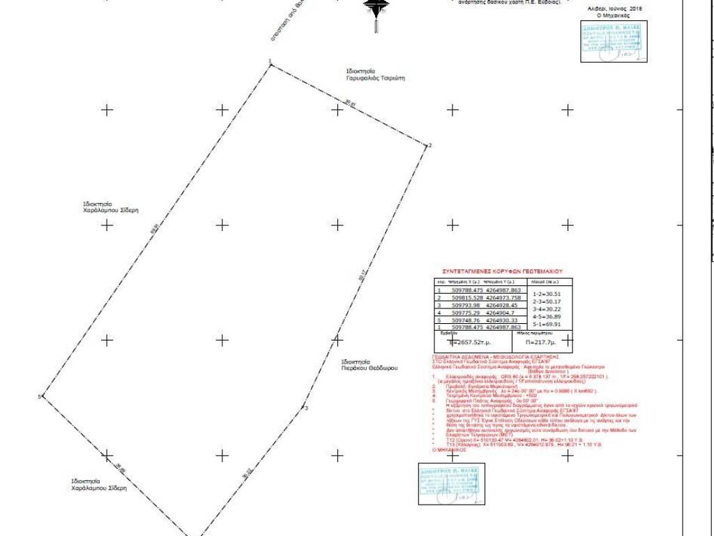 οικόπεδο άρτιο, 2657,52 τ.μ. στη θέση με τοπωνύμιο παλιάμπελα, εντός των ορίων του οικισμού Ορίου, Δημοτική Ενότητα Αυλώνος, Δήμου Αλιβερίου Κύμης, Ευβοίας, σε θέση με θέα, φυτεμένο με περίπου 30 Ρίζες ελιές, συντεταγμένες ενδεικτικού σημείου κατά ΕΓΣΑ΄87 , (Χ: 509788. 475 , Υ: 4264987. 863 )