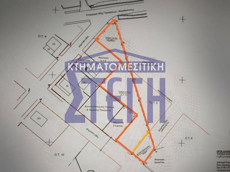 Κωδικός ακινήτου: 3-295 - Γαργαλιάνοι Ντερβίση ΠΩΛΕΙΤΑΙ οικοδομήσιμο επίπεδο οικόπεδο συνολικής επιφάνειας 1600.00 τ.μ. με συντελεστή δόμησης: 1.00 και συντελεστή κάλυψης: 0.50 Διαθέτει πρόσοψη 50 μέτρα απόσταση από θάλασσα 400 μέτρα απόσταση από πόλη 200 μέτρα Τιμή: 225.000 € Προνομιακό οικόπεδο στην είσοδο της Μαραθούπολης, με πρόσοψη 20 μέτρων επί γωνίας Δημοτικής οδού με ΕπΟ Γαργαλιάνων-Μαραθούπολης και 30 μέτρων επί φαρδιάς Δημοτικής οδού. 1050τμ εντός σχεδίου, 350τμ εκτός σχεδίου, 200τμ ρυμοτομούμενο. Με ολοκληρωμένο τοπογραφικό Οκτωβρίου 2025, χωρίς θέματα δασικών χαρτών, έχει ιδιαίτερη διαρρύθμιση ως οικόπεδο με συγκεκριμένα σημεία οικοδόμησης. Εσωτερικός κωδικός ΠΠ1227-295, απευθείας επικοινωνία 6951-796166 .