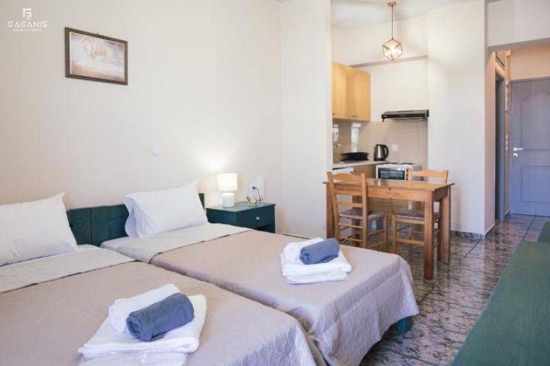 Είναι πλήρως επιπλωμένο και ηλεκτρικά εξοπλισμένο, έτοιμο προς άμεση κατοίκηση. Αποτελείται από ενιαίο χώρο ύπνου–καθιστικού, κουζινάκι, μπάνιο και μπαλκόνι. Διαθέτει επίσης ηλιακό θερμοσίφωνα και κλιματιστικό.