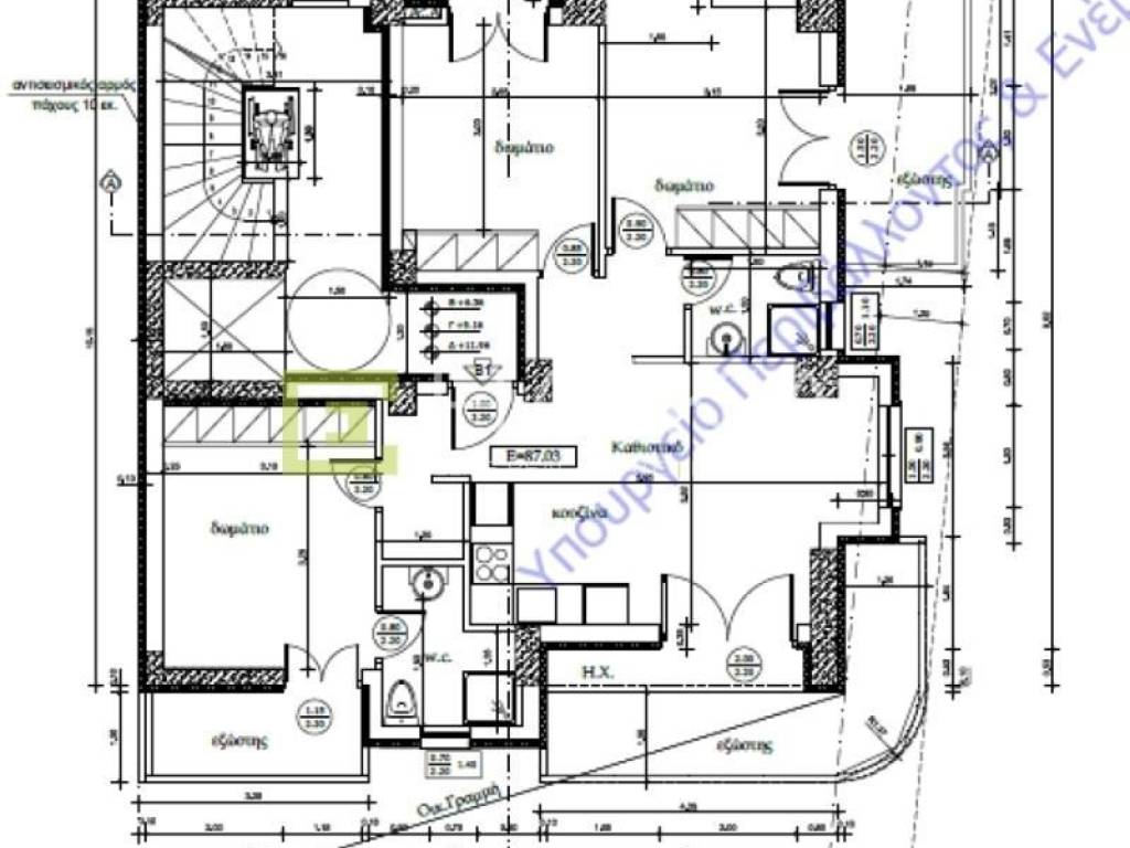 Διατίθεται προς πώληση σε οικοδομή υπό κατασκευή, οροφοδιαμέρισμα 3ου ορόφου με επιφάνεια 87 τ.μ. σε γωνιακό οικόπεδο.Το διαμέρισμα είναι προσόψεως, γωνιακό και διαμπερές αποτελείται από:3 Υπνοδωμάτια2 ΜπάνιαΚουζίνα open planΚαθιστικόΠεριλαμβάνει 4 μπαλκόνια, ένα για κάθε υπνοδωμάτιο και ένα μεγάλο μπαλκόνι από το καθιστικό, προσφέροντας άπλετο φυσικό φως και θέα.Προβλέπεται η δυνατότητα αλλαγής στη διαμόρφωση του εσωτερικού χώρου σύμφωνα με τις ανάγκες του αγοραστήΤο διαμέρισμα διαθέτει:Ενεργειακή Κλάση Α+θερμοπρόσοψη 10cmατομικό λέβητα φυσικού αερίουηλιακό θερμοσίφωνα κουφώματα αλουμινίου θερμομονωτικά πόρτα ασφαλείαςπλακάκια Α' ποιότητας (χρωματική επιλογή αγοραστή)πλακάκια μπαλκονιού, αντιπαγωτικά, αντιολισθητικά ντουλάπες στα υπνοδωμάτια εως το ταβάνικουζίνα με ντουλάπια πάνω κάτωΜπάνια πλήρηςφωτοβολταικά πανελ στην στέγη για τις ανάγκες των κοινοχρήστωνΘέση Στάθμευσης (επιπλέον 10.000€) με προεγκατάσταση φόρτισης ηλεκτρικού αυτοκινήτουΠρόσβαση ΑΜΕΑ
