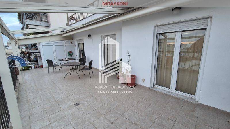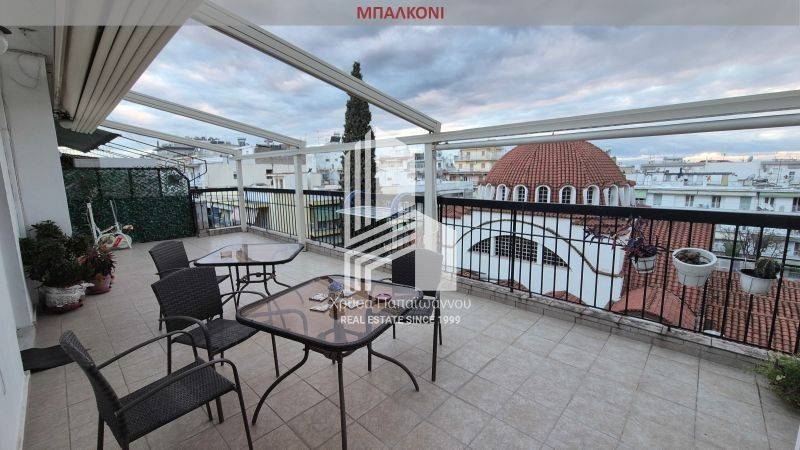 ΠΩΛΕΙΤΑΙ κατά αποκλειστικότητα διαμέρισμα στον 4ο όροφο (ρετιρέ) συνολικής επιφάνειας 160.00 τμ. Αποτελείται από 5 υπνοδωμάτια, σαλόνι, κουζίνα, αποθήκη, μπάνιο και WC. Έχει μεγάλη βεράντα με ηλεκτροκίνητη τεντοπέργκολα και φωτισμό. Είναι κατασκευασμένο το 1973 με ανακαινισμένη κουζίνα, μπάνιο και πατώματα. Διαθέτει ατομική θέρμανση (φυσικό αέριο), ηλιακό θερμοσίφωνα, θέα σε αστικό τοπίο με ανοιχτωσιά (ανοιχτό μέτωπο προς το δρόμο), κουφώματα αλουμινίου, πατώματα από πλακάκι, θωρακισμένη πόρτα, ντουλάπες, πατάρια, ανελκυστήρα, A/C, σίτες.