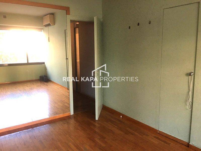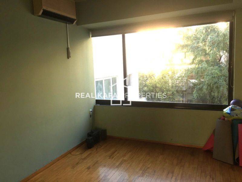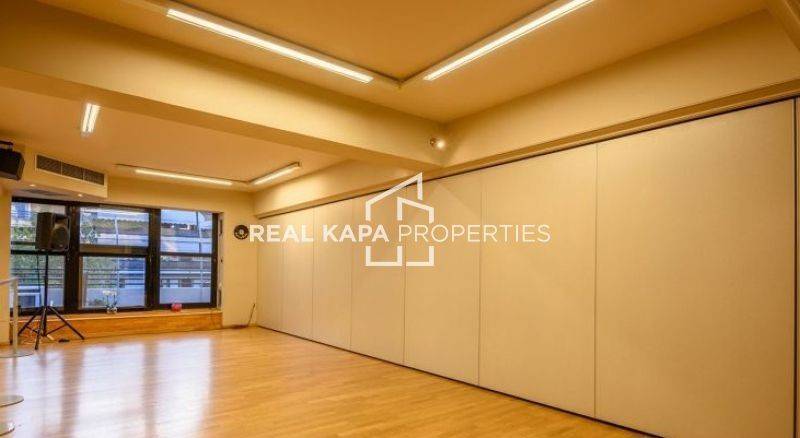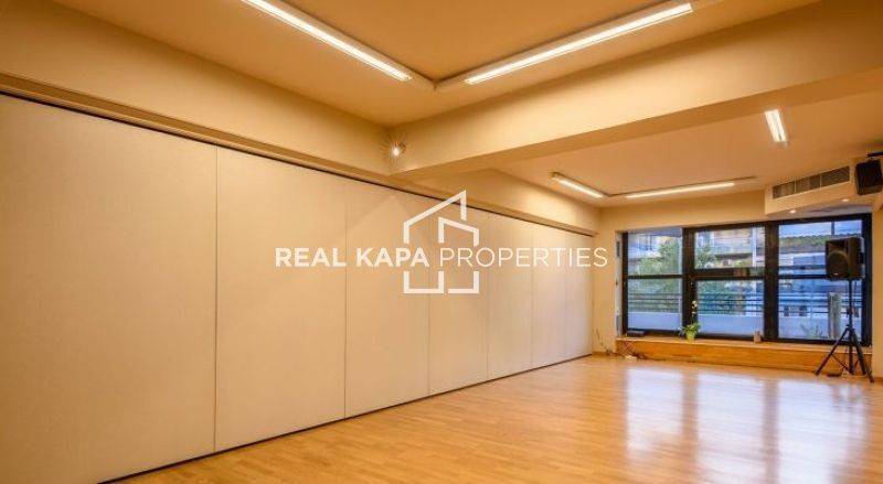 Διαθέτει μια πολύ μεγάλη αίθουσα με παρκέ, ιδιαιτέρως φωτεινή και με μεγάλο όμορφο μπαλκόνι και θέα προς την Αγίου Ιωάννου και τον Υμηττό,
