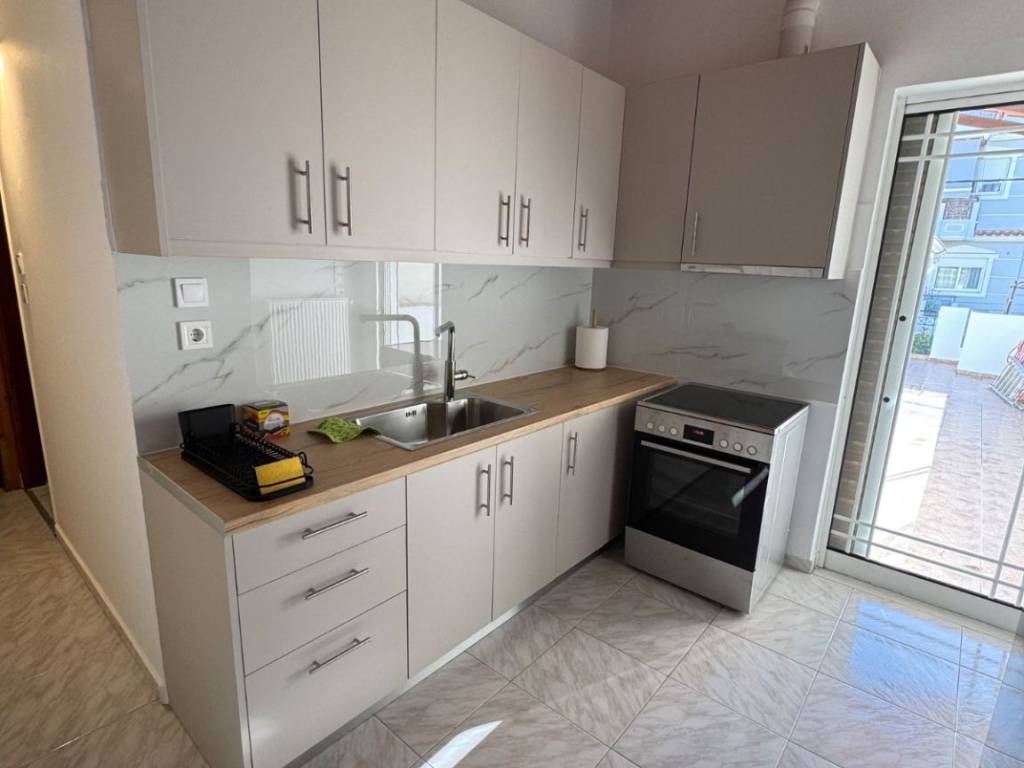 Ενοικιάζεται μη επιπλωμένο διαμέρισμα 1ου ορόφου σε μονοκατοικία με ανεξάρτητα διαμερίσματα, σε πολύ καλή κατάσταση. Το ακίνητο διαθέτει ένα υπνοδωμάτιο, σαλόνι, κουζίνα, μπάνιο και έναν επιπλέον χώρο που μπορεί να χρησιμοποιηθεί ως γραφείο ή δεύτερο δωμάτιο, ανάλογα με τις ανάγκες του ενοικιαστή. Διαθέτει πολύ μεγάλο μπαλκόνι, ηλιακό θερμοσίφωνα και κουφώματα με πατζούρια αλουμινίου. Θέρμανση και ψύξη με δύο κλιματιστικά. Το 2025 έγινε μερική ανακαίνιση και ενεργειακή αναβάθμιση: ανακαινίστηκαν κουζίνα και μπάνιο, έγινε θερμοπρόσοψη και βάφτηκε εσωτερικά και εξωτερικά πλήρως. Χωρίς κοινόχρηστα. Δυνατότητα διάθεσης με ηλεκτρικές συσκευές κατόπιν συνεννόησης Ήσυχο σπίτι, ιδανικό για ένα άτομο, ζευγάρι ή οικογένεια με μικρό παιδάκι.