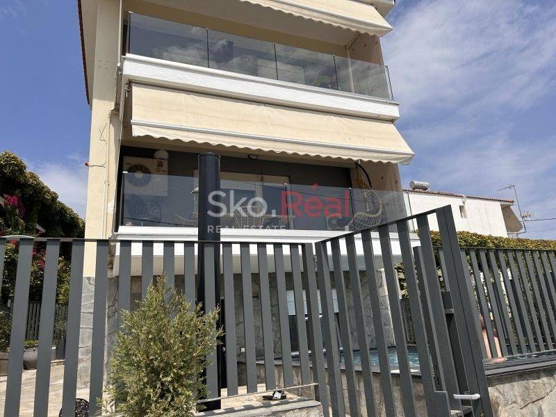 Πωλείται μονοκατοικία με θέα τον Τορωναίο Κόλπο, λίγα μέτρα από υπέροχη παραλία κόλπο με καταγάλανα νερά. Ένα ακίνητο σε άριστη κατάσταση, τριών επιπέδων που είναι χωρισμένο σε μία αυτόνομη ισόγεια γκαρσονιέρα περίπου 40τμ, που αποτελείται από ένα δωμάτιο, σαλοκουζίνα και μπάνιο. Από την πίσω πλευρά του ακινήτου βρίσκετε η είσοδος της μεζονέτας του 1ου ορόφου, η οποία αποτελείται από σαλοκουζίνα και wc στο πρώτο επίπεδο και δύο δωμάτια και μπάνιο στο δεύτερο επίπεδο. Η θέρμανση είναι αυτόνομη πετρελαίου και 3 κλιματιστικά. Μοναδικής αισθητικής μπαλκόνι με απεριόριστη θέα τη θάλασσα, ιδιωτική πισίνα και άνετη αυλή, ολοκληρώνουν μία κατοικία η οποία αποτελεί και επενδυτική ευκαιρία! Άμεσα διαθέσιμη για υποδείξεις!
