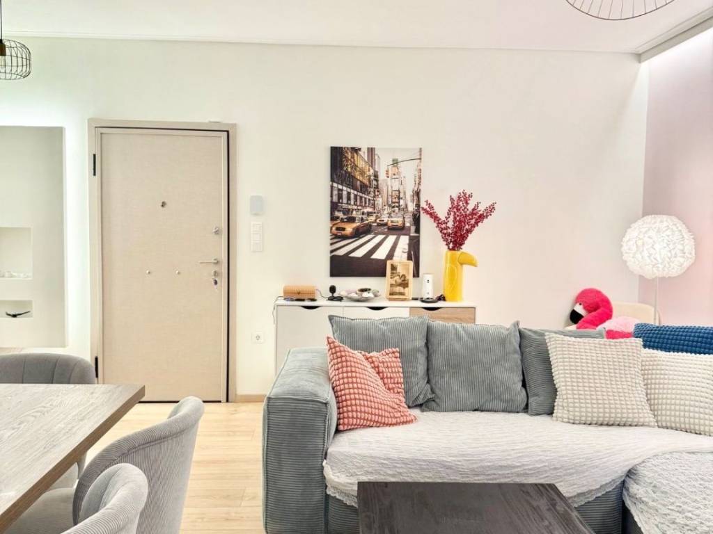 Εξαιρετικό πλήρως ανακαινισμένο διαμέρισμα 1ου ψηλού ορόφου ( υπάρχει ημιώροφος) σε πολύ καλό σημείο, κοντά σε σχολεία, συγκοινωνίες, και στη νέα στάση ΜΕΤΡΟ. Εχει γίνει ριζική ανακαίνιση σε υδραυλικά, ηλεκτρολογικά, κουζίνα, μπάνιο, πατώματα, ντουλάπες και πόρτες. Αποτελείται από 1 φωτεινότατο σαλόνι ενιαίο με κουζίνα με πάσο, 2 άνετα υπνοδωμάτια και 1 μπάνιο με πατάρι. Επιπλέον διαθέτει ενεργειακά κουφώματα αλουμινίου με διπλά τζάμια και σίτες, πόρτα ασφαλείας, συναγερμό και μεγάλες βεράντες με τέντες. Με το κλειδί στο χέρι. Τηλ επικοινωνίας 6974333444