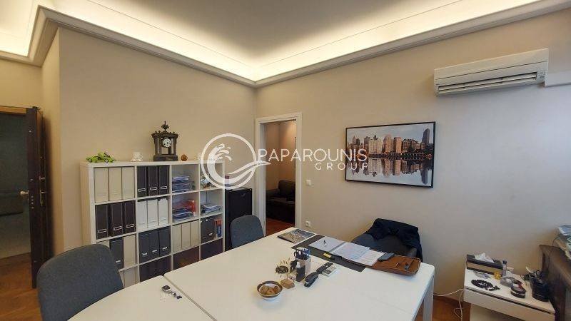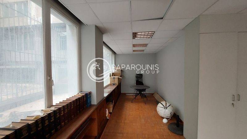 Η είσοδος στο ακίνητο γίνεται απευθείας από την Πλατεία Συντάγματος, όπου συναντάμε στον υπερυψωμένο όροφο ισογείου με περιμετρικά παράθυρα και φυσικό φως (γωνιακό).