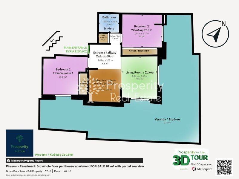 εντοιχισμένη κουζίνα με φούρνο και εστίες, ψυγείο, πλυντήριο ρούχων, φούρνο μικροκυμάτων, τηλεόραση, πλήρως εξοπλισμένη κρεβατοκάμαρα και τραπεζαρία. Περιηγηθείτε στο σπίτι μέσω 3D tour και δείτε το βίντεο υψηλής ανάλυσης με επιπλέον πληροφορίες και εικόνες από τη γειτονιά. Διαρρύθμιση Χώρων 2 υπνοδωμάτια Ενιαίος χώρος κουζίνας – σαλονιού Μπάνιο με πατάρι και ειδικό χώρο laundry Μεγάλη περιμετρική βεράντα 60 τ.μ. – ιδανική για roof garden Τεχνικά Χαρακτηριστικά Ενεργειακή Κλάση Β+ Ενεργειακά κουφώματα με διπλά τζάμια, σίτες και ηλεκτρικά θερμοδιακοπτόμενα ρολά Ηλιακός θερμοσίφωνας 200 lt, ενεργειακής κλάσης A+++ Αντλία θερμότητας ψύξης/θέρμανσης με fan coil Πλήρης θερμοπρόσοψη σε όλο το κτίριο Μόνωση ταράτσας & πρόσθετη εσωτερική θερμομόνωση σε ψευδοροφή και τοίχους Acoustic panels με ηχομονωτικές ιδιότητες Πόρτα ασφαλείας Συναγερμός Σύγχρονη πολυτελής κουζίνα και μπάνιο LED φωτισμός (γενικός και κρυφός) Προσανατολισμός: Βόρειος / Ανατολικός Σημεία Ενδιαφέροντος 35 μ. από την ακτογραμμή 200 μ. από παραλία για κολύμβηση 50 μ. από νοσοκομείο 1 χλμ. από σταθμό Μετρό 50 μ. από στάση λεωφορείου 1 χλμ. από το λιμάνι του Πειραιάς 8 χλμ. από το κέντρο της Αθήνα και σημαντικούς αρχαιολογικούς χώρους 30 χλμ. από το Διεθνές Αεροδρόμιο Αθηνών Ελευθέριος Βενιζέλος Δίπλα στην κεντρική αγορά, σούπερ μάρκετ, θαλάσσιες δραστηριότητες, χώρους εστίασης και διασκέδασης — σε μία από τις πιο προνομιακές και ζωντανές περιοχές του Πειραιά.
