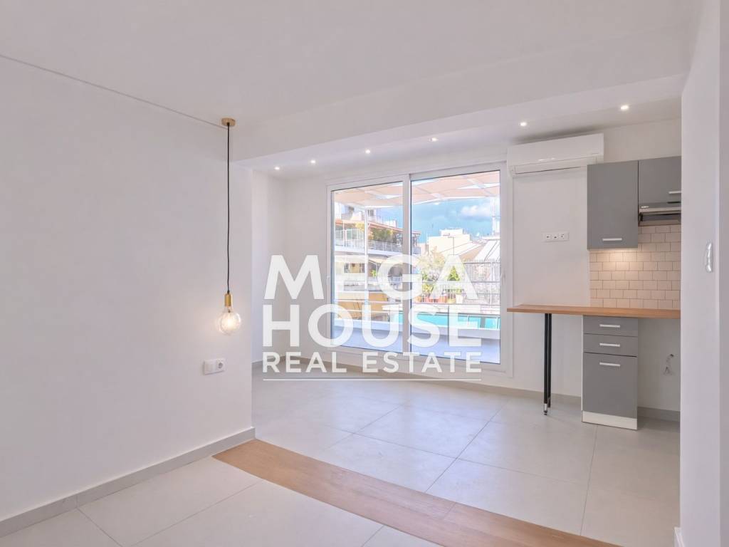 ΝΕΟΣ ΚΟΣΜΟΣ - ΠΩΛΕΙΤΑΙ ΑΝΑΚΑΙΝΙΣΜΕΝΟ ΣΤΟΥΝΤΙΟ-ΡΕΤΙΡΕ ΜΕ ΜΕΡΙΚΗ ΘΕΑ Ακρόπολη και καταπράσινο τοπίο συνολικής επιφάνειας 30 τ.μ., στον τέταρτο (4ο) όροφο πολυκατοικίας, ΧΩΡΙΣ ΑΣΑΝΣΕΡ. Διαρρύθμιση: -1 υπνοδωμάτιο-σαλόνι-κουζίνα (ενιαίος χώρος) -1 μπάνιο. Διαθέτει: -μεγάλη βεράντα (58τμ.) -δάπεδο από πλακάκια/ξύλο -πόρτα ασφαλείας -κλιματισμό ψύξης/θέρμανσης -κουφώματα αλουμινίου με διπλά τζάμια -σίτες -μόνωση περιμετρικά του διαμερίσματος (τύπου κέλυφος) -τέντα/πέργκολα -διαμορφωμένο χώρο για πλυντήριο ρούχων στην βεράντα Είναι προσόψεως, γωνιακό και φωτεινό κατά τη διάρκεια της ημέρας. Βρίσκεται 7 λεπτά πεζής διαδρομής από την στάση Μετρό Άγιος Ιωάννης, κοντά σε σουπερμάρκετ, σχολεία, πάρκο, καταστήματα εστίασης και λιανικής πώλησης. Ιδανικό για επένδυση. Επικοινωνία στο τηλέφωνο: +306940408618 (Viber, WhatsApp), Ιστοσελίδα: www.megahouse.gr