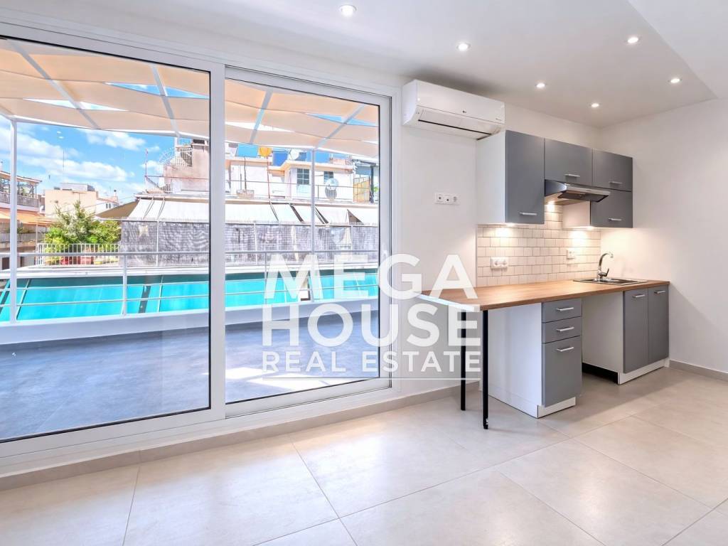 ΝΕΟΣ ΚΟΣΜΟΣ - ΕΝΟΙΚΙΑΖΕΤΑΙ ΑΝΑΚΑΙΝΙΣΜΕΝΟ ΣΤΟΥΝΤΙΟ-ΡΕΤΙΡΕ ΜΕ ΜΕΡΙΚΗ ΘΕΑ Ακρόπολη και καταπράσινο τοπίο συνολικής επιφάνειας 30 τ.μ., στον τέταρτο (4ο) όροφο πολυκατοικίας, ΧΩΡΙΣ ΑΣΑΝΣΕΡ. Διαρρύθμιση: -1 υπνοδωμάτιο-σαλόνι-κουζίνα (ενιαίος χώρος) -1 μπάνιο. Διαθέτει: -μεγάλη βεράντα (58τμ.) -δάπεδο από πλακάκια/ξύλο -πόρτα ασφαλείας -κλιματισμό ψύξης/θέρμανσης -κουφώματα αλουμινίου με διπλά τζάμια -σίτες -μόνωση περιμετρικά του διαμερίσματος (τύπου κέλυφος) -τέντα/πέργκολα Είναι προσόψεως, γωνιακό και φωτεινό κατά τη διάρκεια της ημέρας. Βρίσκεται 7 λεπτά πεζής διαδρομής από την στάση Μετρό Άγιος Ιωάννης, κοντά σε σουπερμάρκετ, σχολεία, πάρκο, καταστήματα εστίασης και λιανικής πώλησης. Ιδανικό για φοιτητές. Επικοινωνία στο τηλέφωνο: +306940408618 (Viber, WhatsApp), Ιστοσελίδα: www.megahouse.gr