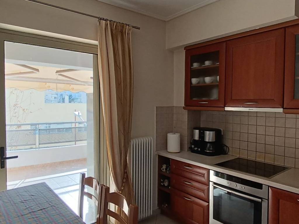 Ενοικιάζεται διαμέρισμα 3ου ορόφου συνολικής επιφάνειας 110 τ.μ. κατασκευής 2006, γωνιακό, πολύ φωτεινό, διαμπερές, με πολύ καλή διαρρύθμιση. Αποτελείται από 3 ευρύχωρα υπνοδωμάτια, μεγάλο σαλόνι, χωλ, ανεξάρτητη κουζίνα, μπάνιο και WC. Διαθέτει αυτόνομη θέρμανση ( πετρέλαιο ), boiler, κουφώματα αλουμινίου, διπλά τζάμια και σίτες, όλα συρόμενα. Διαθέτει τέντες σε όλα τα μπαλκόνια με ηλεκτρικό μηχανισμό, πόρτα ασφαλείας με κλειδαριά ασφαλείας, πατώματα από μεγάλο πλακάκι πολυτελείας, παρκέ στα υπνοδωμάτια και εντοιχιζόμενες ντουλάπες. Επίσης μεγάλα μπαλκόνια με θέα, στα οποία έχουν πρόσβαση όλα τα δωμάτια, το σαλόνι και η κουζίνα. Είναι εξοπλισμένο με καινούργιο ψυγειοκαταψύκτη και απορροφητήρα. Τέλος διαθέτει αποθήκη στο α΄υπόγειο εξοπλισμένη με ράφια dexion και πλακάκι στο δάπεδο, και μια κλειστή θέση parking στο β΄υπόγειο. Βρίσκεται πλησίον σταθμού ΗΣΑΠ, στάσεις λεωφορείων, καθώς επίσης και πολύ κοντά σε εμπορικά καταστήματα, σχολεία και πάρκα. Τιμή συζητήσιμη.